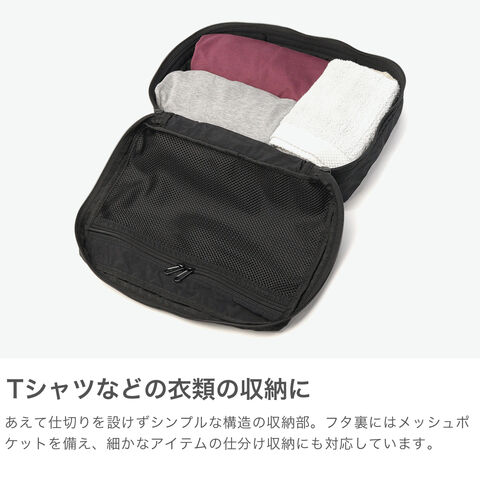軽量性と優れた耐久性を併せ持つリップストップナイロンを用いた『SOLID LIGHT COLLECTION』のパッキングキューブ。用途に応じて選べる3サイズ展開で、こちらはTシャツやショーツ、寝間着などの衣類の整理に最適なMサイズです。荷物の仕分けがしやすく、スーツケース内もすっきり整います。
