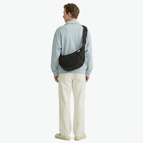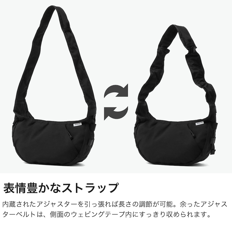 計算された機能性 アメリカの郵便配達員カバンの思わせるルックスが特徴的な「COURIER」コレクションの「HOBO BAG WIDE」のSサイズ。ショルダーストラップは内蔵されたアジャスターで長さを調節でき、縮んだストラップがアクセントとなり存在感を発揮。余ったアジャスターベルトは、側面のウェビングテープ内に収納可能。ワッシャー加工を施した膨らみのあるヴィンテージライクな表情が魅力的。コーディネートのアクセントとしても優秀なデザイン性の高いアイテムに仕上がっています。 |
