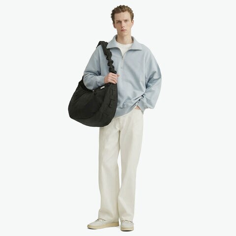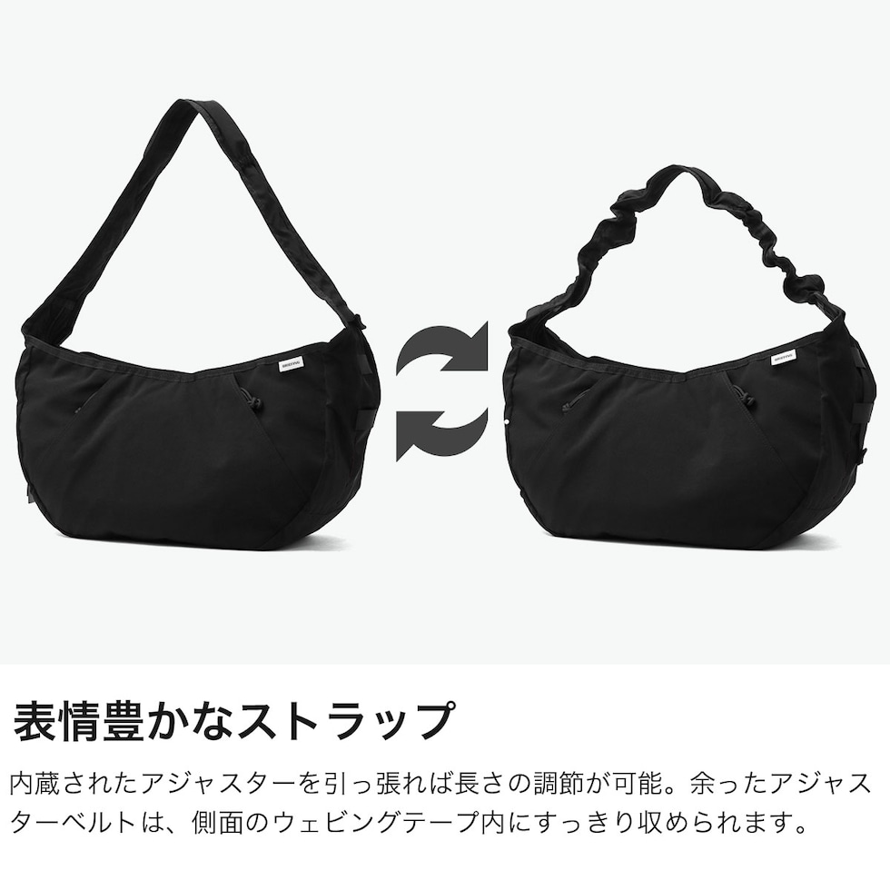 優秀なデザイン アメリカの郵便配達員カバンの思わせるルックスが特徴的な「COURIER」コレクションの「HOBO BAG WIDE」。ショルダーストラップは内蔵されたアジャスターで長さを調節でき、縮んだストラップがアクセントとなり存在感を発揮。余ったアジャスターベルトは、側面のウェビングテープ内に収納可能。ワッシャー加工を施した膨らみのあるヴィンテージライクな表情が魅力的。コーディネートのアクセントとしても優秀なデザイン性の高いアイテムに仕上がっています。 |