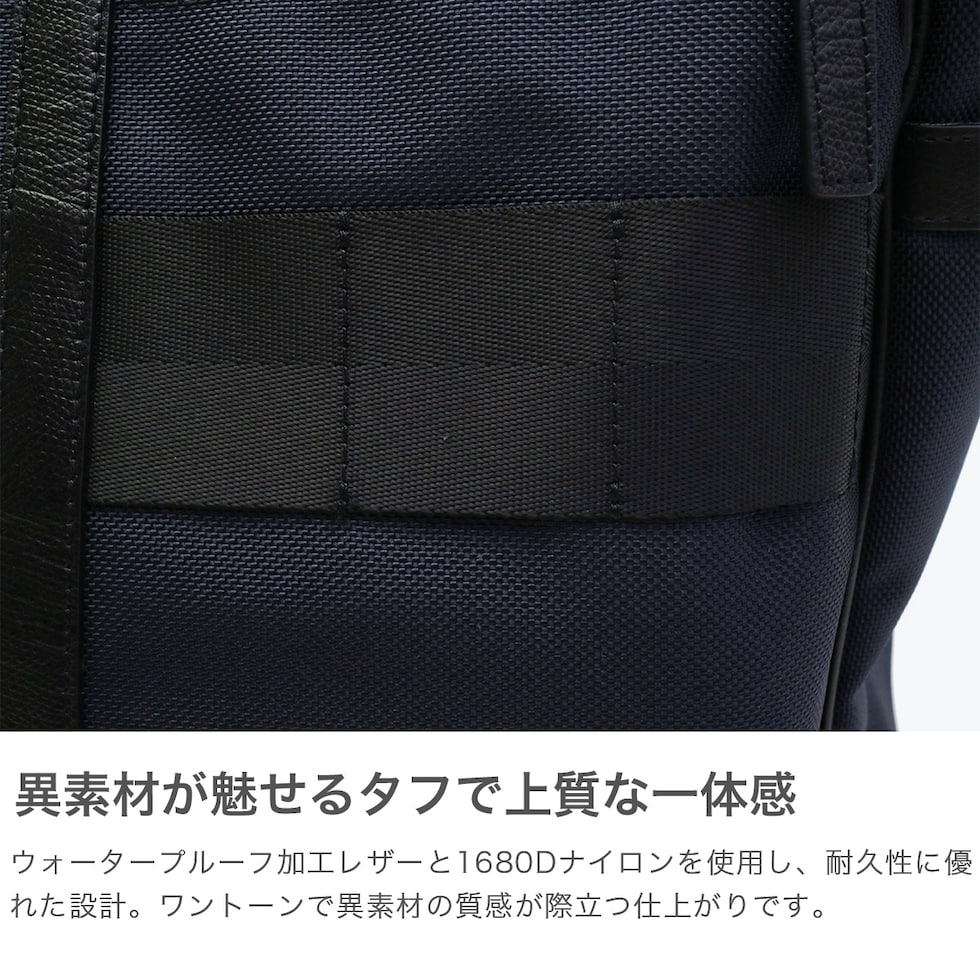 ウォータープルーフレザーと高密度ナイロンを組み合わせた「FUSION COLLECITION」の高級感あふれるトートバッグです。レザーに施された主張しすぎないブランドロゴでプレミアム感を演出しつつ、BRIEFINGらしさを残したシックなデザインが魅力的。機能性豊かなワンランク上をいくアイテムです。
