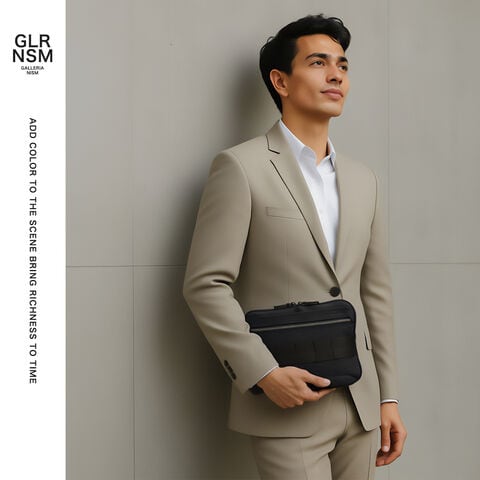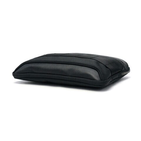 お供に最適なモデル ブランドの象徴であるレッドラインをあえて使わず、ワントーンで仕上げたシックな表情が魅力の「FUSION COLLECTION」のタブレットケース。11インチ程度までのデバイスが収納できるサイズ感で、フロントポケットにはスマートフォンはもちろん、充電器やケーブルなど細かなアイテムも整理可能です。ウォータープルーフ加工を施したレザーと高強度ナイロンのコンビネーションが、都会的で洗練された印象を引き立てます。 |