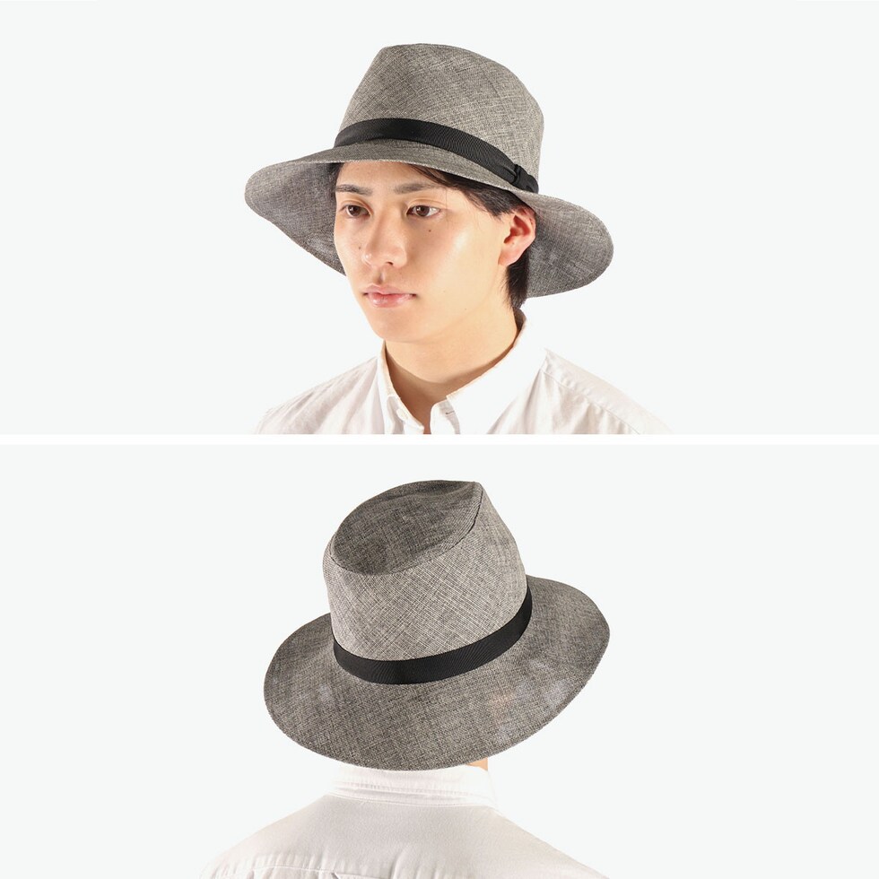 | ワイドブリムで上品に 軽く快適な被り心地 ワイドブリムがこなれ感を演出する中折れハット。細いリボンを巻いたのみのシンプルなデザインでユニセックスに使えます。軽量なペーパー素材は耐久性があり、裏地のメッシュ生地で通気性も抜群。シワ加工が施され、ラフなスタイルにぴったりなデイリーアイテムです。 |
