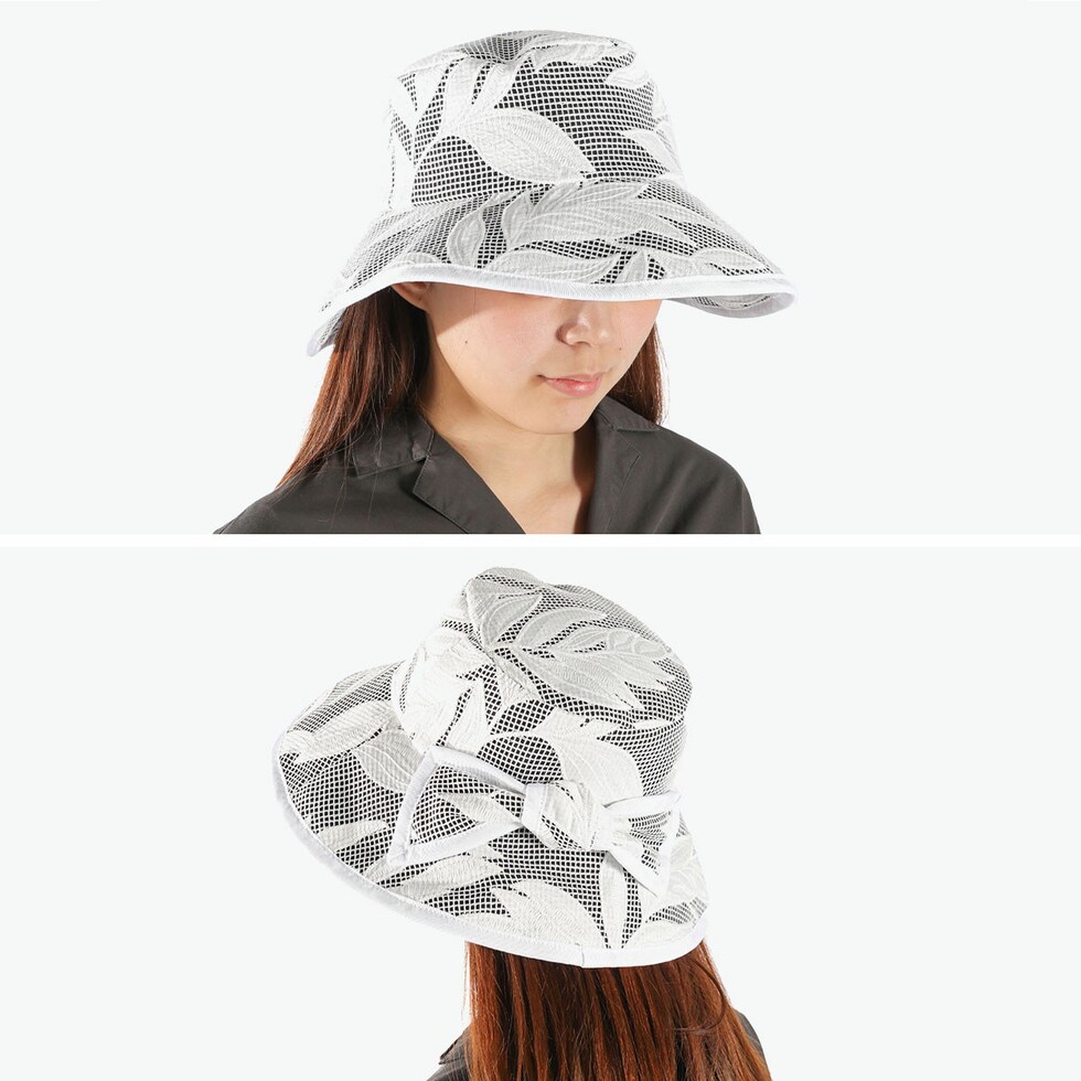 紫外線対策もばっちりなUVカット機能付きバケットハット。顔周りを包むロングブリムと、大きなリボンが上品で女性らしい印象を演出します。通気性の良いメッシュ素材で、春夏のお出かけや旅行に最適。シンプルなデザインでカジュアルにもきれいめにも合わせやすい、上質なアイテムです。