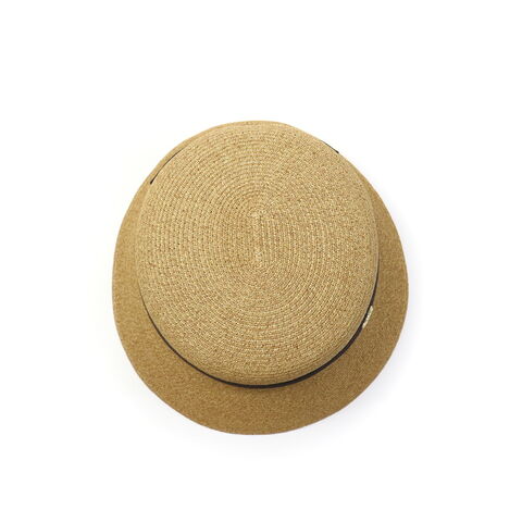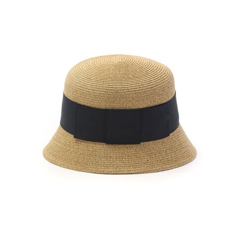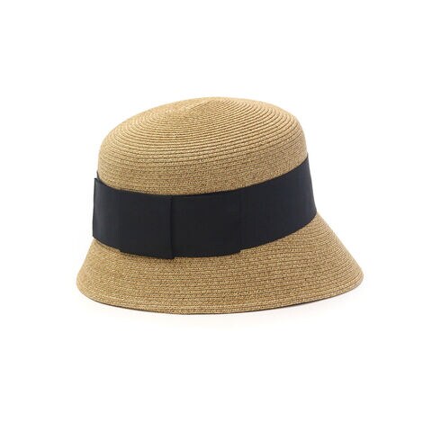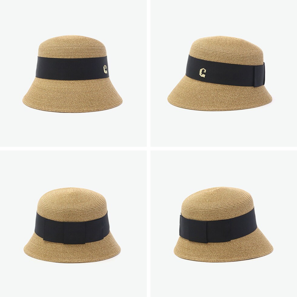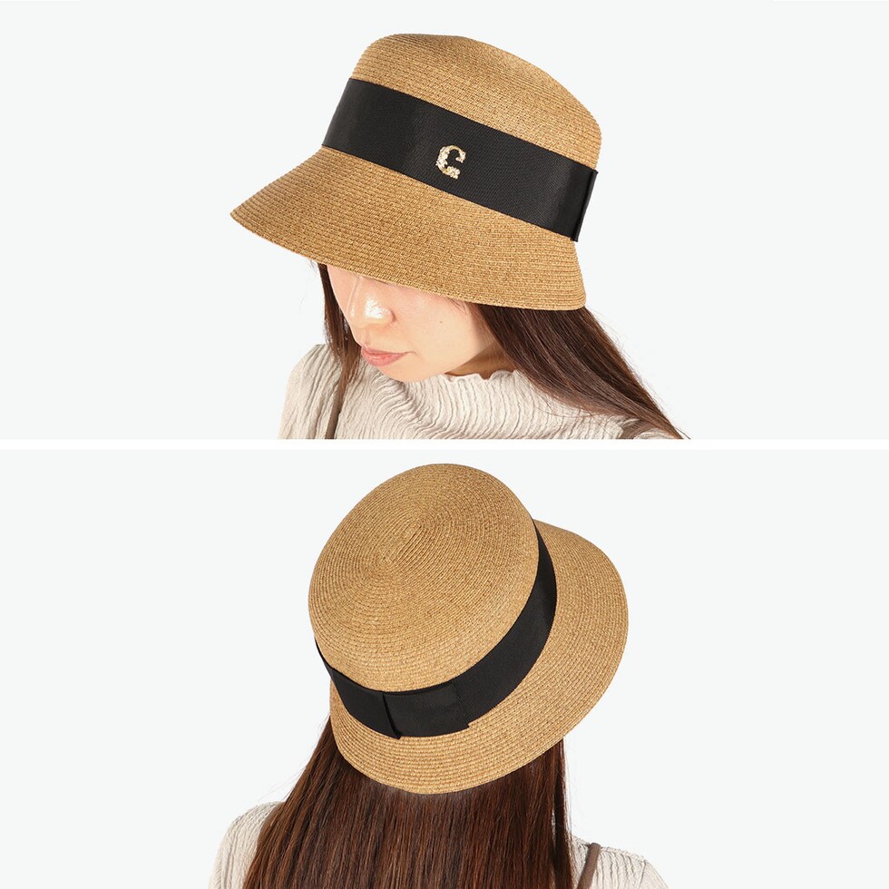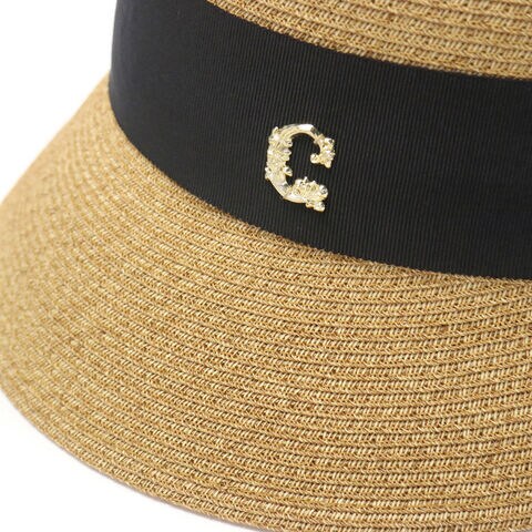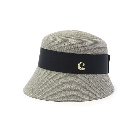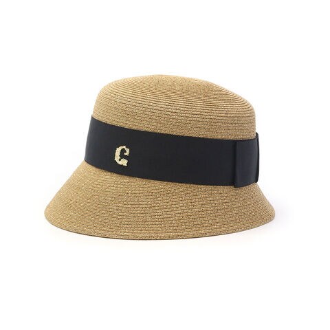 上品クロッシェハット 丸みを帯びたクラウンに長めのダウンブリムを組み合わせたクラシカルなシルエットのペーパーブレードのクロッシェハット。腰部分には太めのリボンを巻き、アクセントをプラス。さらにゴールドのCパーツを飾り付け、シンプルながらも上品なデザインのアイテムとなっています。 |
