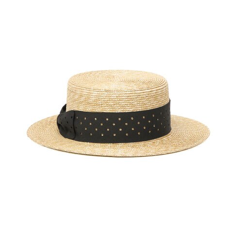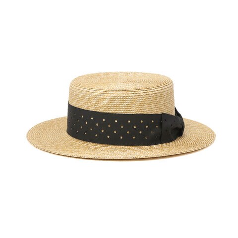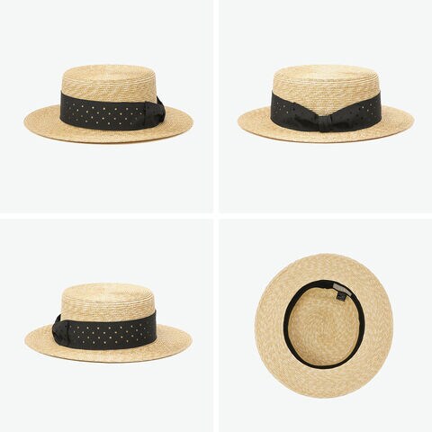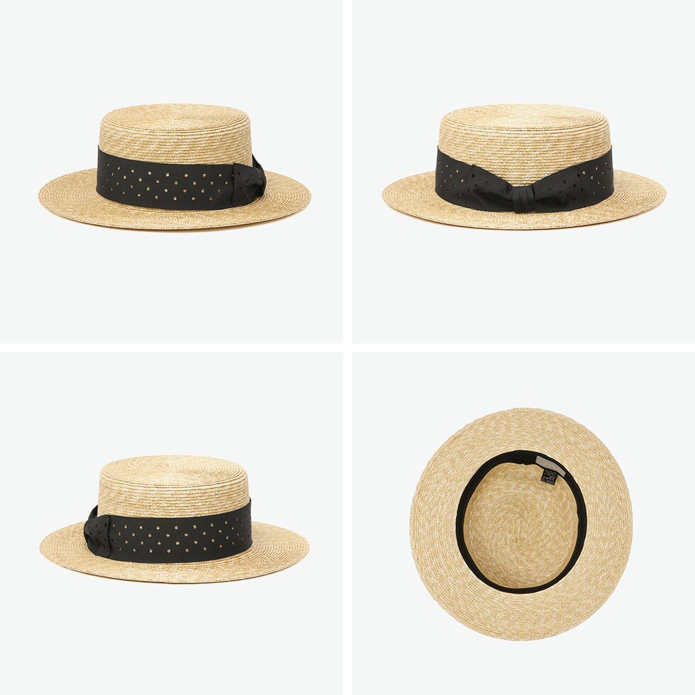 | エレガントに決まる 夏のおしゃれ帽子 天然素材の風合いを楽しめるカンカン帽。細やかな職人技が生み出す美しいフォルムが特徴です。フラットなクラウンとブリムは、クラシカルな印象を与え、浴衣や普段使いにもぴったり。グログランリボンには、ドット柄のレーザー加工が施され、さりげなくアクセントをプラスします。軽量で快適な被り心地は、夏のお出かけや旅行にも最適です。 |