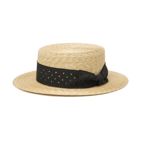 天然素材の風合いを楽しめるカンカン帽。細やかな職人技が生み出す美しいフォルムが特徴です。フラットなクラウンとブリムは、クラシカルな印象を与え、浴衣や普段使いにもぴったり。グログランリボンには、ドット柄のレーザー加工が施され、さりげなくアクセントをプラスします。軽量で快適な被り心地は、夏のお出かけや旅行にも最適です。