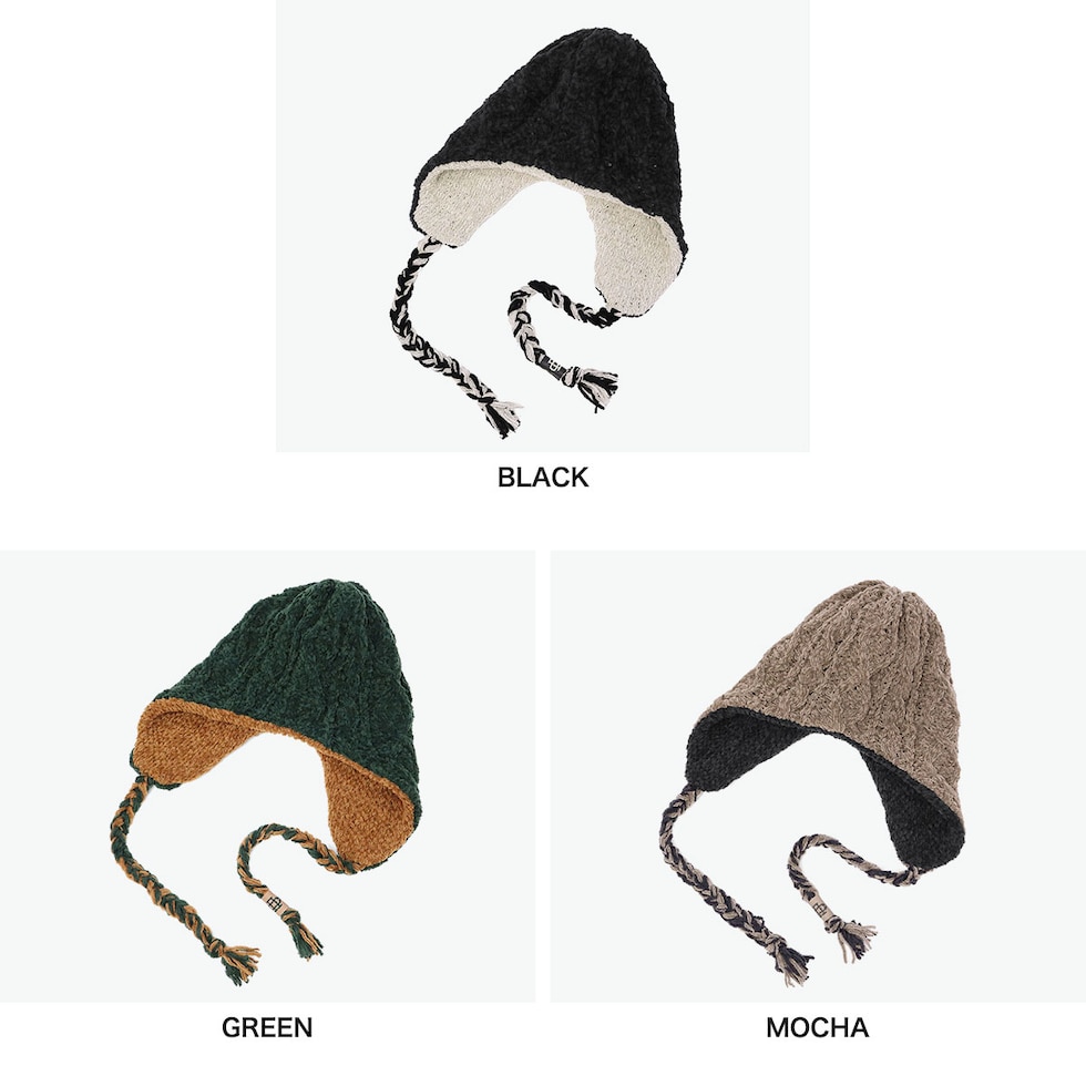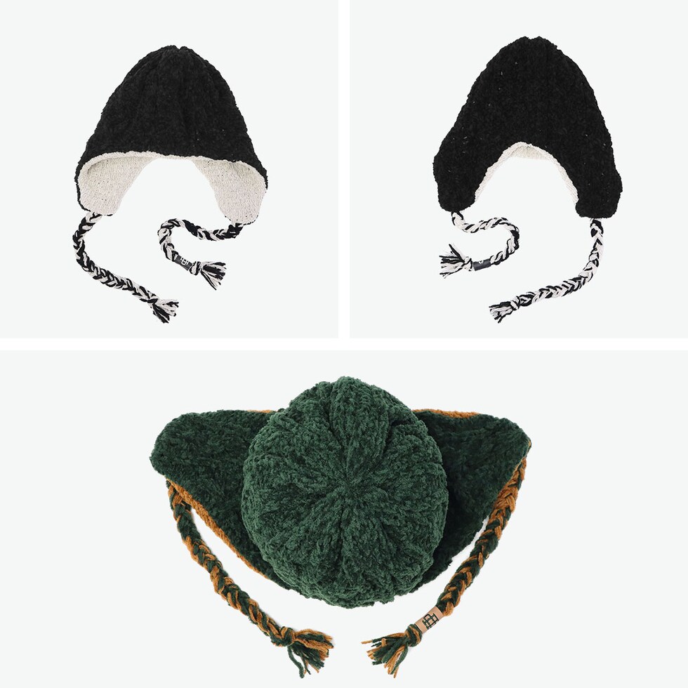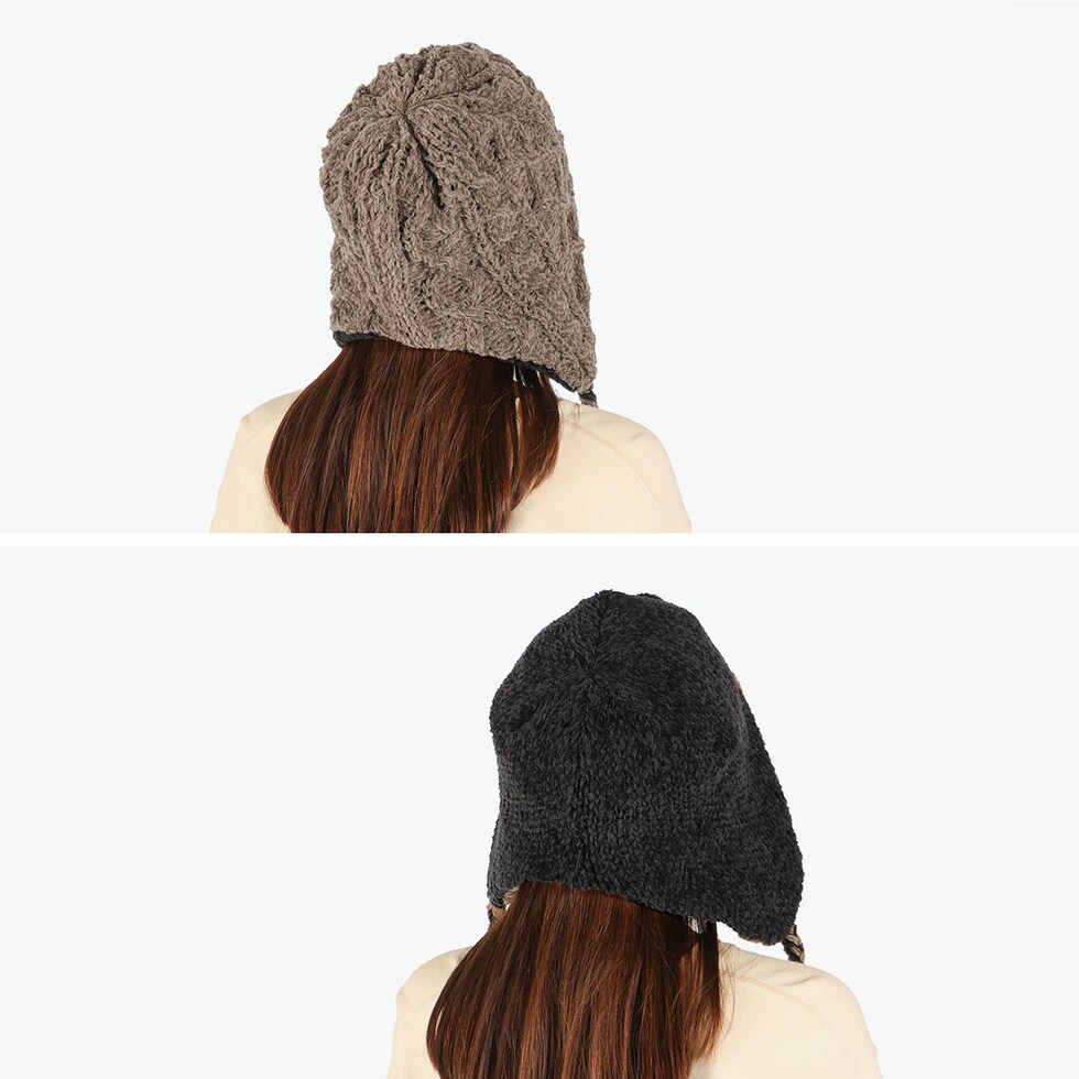 | お洒落を自由に楽しむ あったかニットワッチ リバーシブル仕様の耳付きニット帽。表面は立体感のあるケーブル編み、裏面は配色を切り替えたデザインで、スタイルや気分に合わせて使い分け可能。耳までしっかり覆うフラップ付きで、防寒性も抜群。上質なエクストラファインウールのモール糸を使用し、ふんわり柔らかく、暖かさと快適なかぶり心地を両立したアイテムです。 |