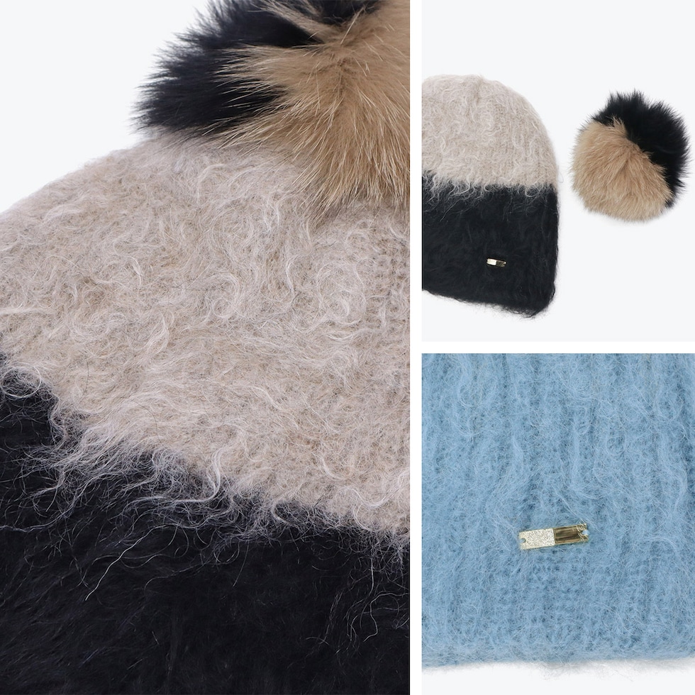 | 素材 | <本体> モヘヤ40%、ウール35%、アルパカ25% <ファー部分> フォックス |