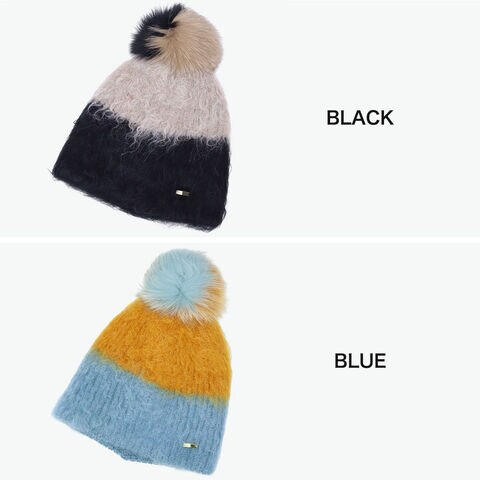 CA4LA 帽子 ニット帽 レディース 秋冬 冬 カシラ ブランド おしゃれ ニットキャップ 防寒 暖かい ツートン バイカラー ポンポン モヘヤ ウール アルパカ 日本製 ふわふわ 秋 可愛い BAA ONM01901