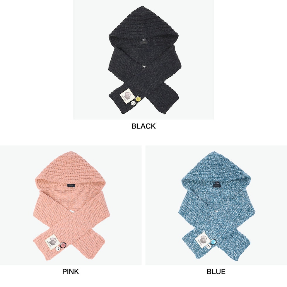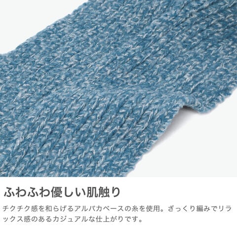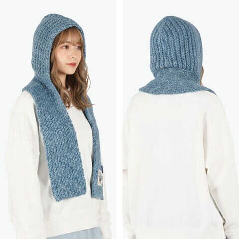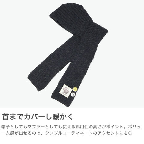 マフラー付きフード アルパカベースの糸を使用しており、チクチク感が少なく長時間の着用もストレスフリー。首まわりもしっかり包めるので防寒としてもおすすめです。単体での使用はもちろん、他の帽子と組み合わせてかぶることでこなれ感アップ。幅広い使い方ができ、コーディネートのアクセントにピッタリなアイテムです。 |