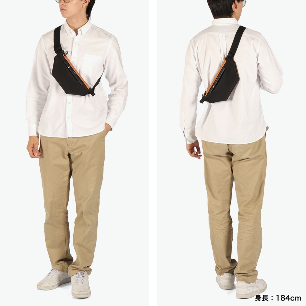 身軽なお出かけを叶える 無駄を省き、すっきりとスリムに仕上げたボディバッグ。ジップ部分のカラーがシンプルなデザインに映えて程よいアクセントになっています。マットな質感と柔らかさを備えた生地がスタイリッシュな印象を格上げ。前掛けでも後ろ掛けでも身体にフィットし、ポケット感覚で使用できます。 |