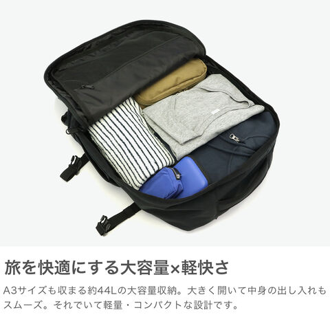 あらゆるアウトドアシーンや旅行で活躍する『MILITARY』スタイルのリュック。こちらは、44Lの大容量ながら機内に持ち込めるサイズと軽さが魅力です。本体には、グローバル・ラゲージトラッカー「Okoban」を搭載。お手持ちの錠前で施錠可能なYKKファスナーを採用し、旅先でのセキュリティー面も安心です。背面とショルダーストラップは高い弾力性と通気性により疲れを軽減してくれる仕様で、旅の心強い味方となるアイテムです。