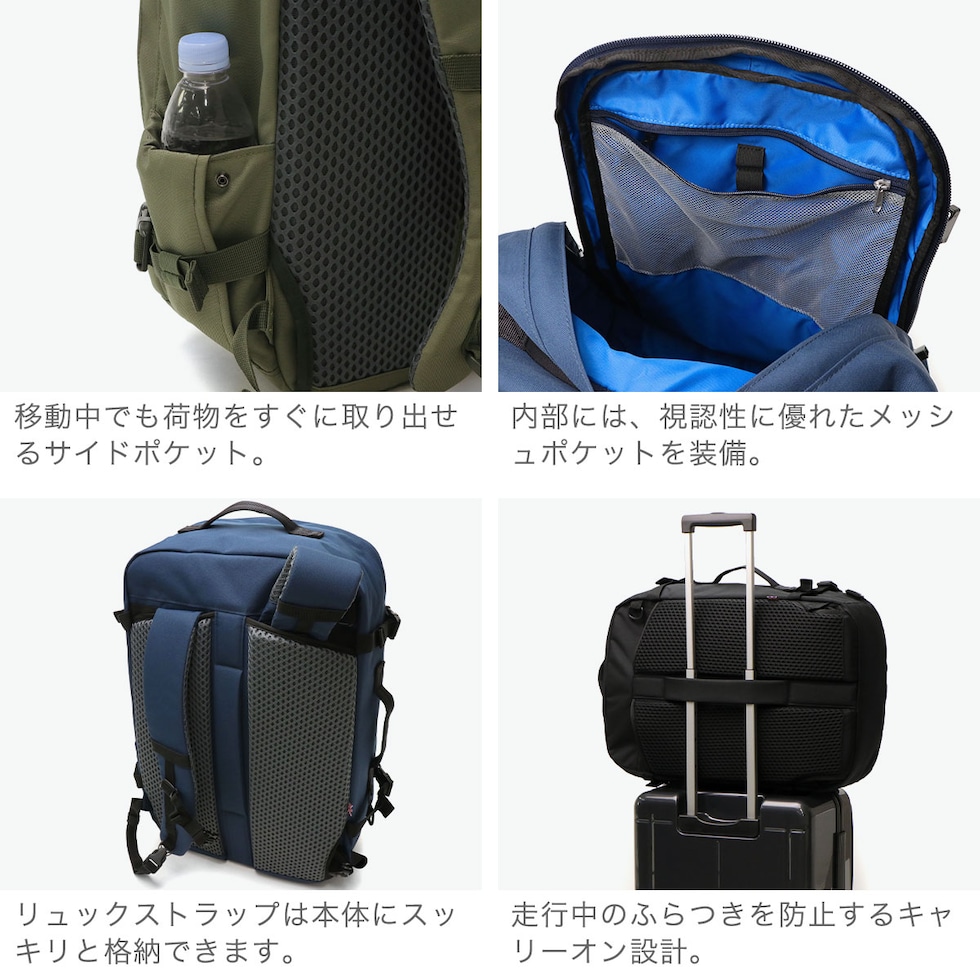 | トラベル向きの 大容量バックパック イギリス発のトラベルバッグブランド『CABINZERO』から、頑丈かつ高性能な2WAYバックパックが登場。トラベル向きの機能を凝縮し、1~3泊分の荷物がまとまる42L容量の収納力を兼ね備えた優秀なアイテムです。内装には視認性の良いメッシュポケットや大きめのポケットを装備し、旅行や出張からアウトドアまで幅広いシーンで活躍します。背面には、リュックストラップを収納可能な構造で、サイドのハンドルを手持ちすることもでき、シーンやスタイルに合わせて使い分けられ便利。南京錠などで施錠できるキーロックホールや、世界最大手荷物捜査システム「OKOBAN」も付いており、セキュリティ面も考慮しています。 |