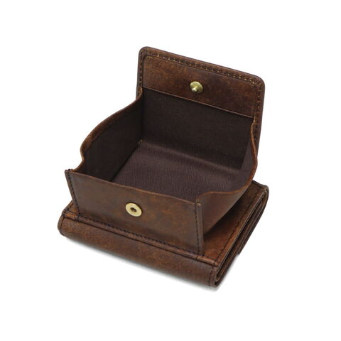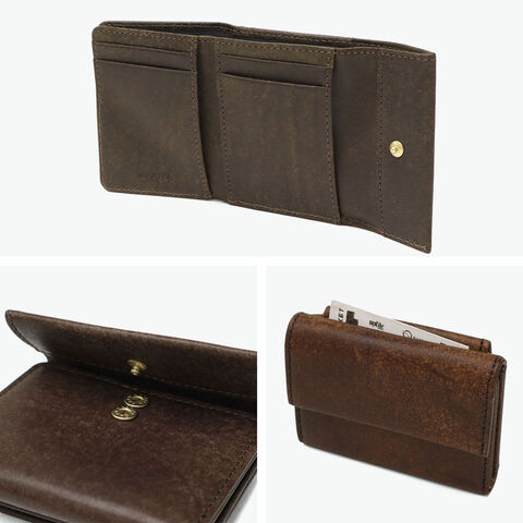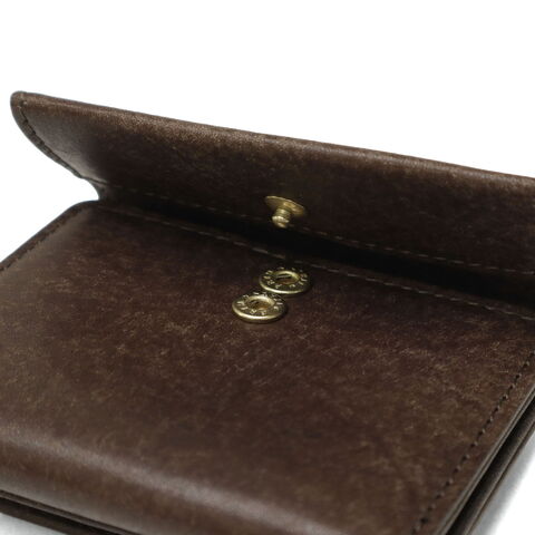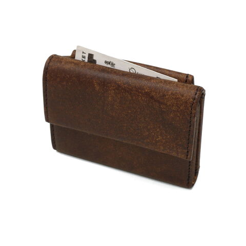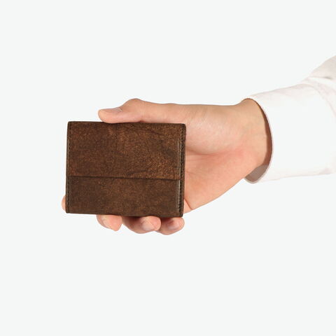 1点ずつ表情が異なる、唯一無二のエイジングを楽しめる、コンパクトな三つ折り財布。手間をかけて仕上げられた革は、やわらかくしっとりとした風合いが特徴で、深みのある上品な印象に。サブウォレットとしてもおすすめのミニマムサイズで、キャッシュレス派の方にもご愛用いただけるアイテムとなっています。
