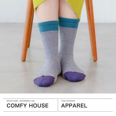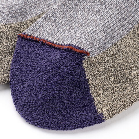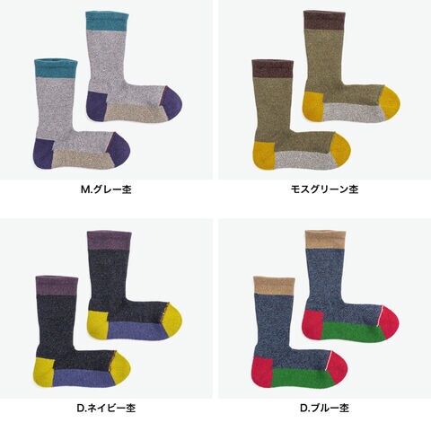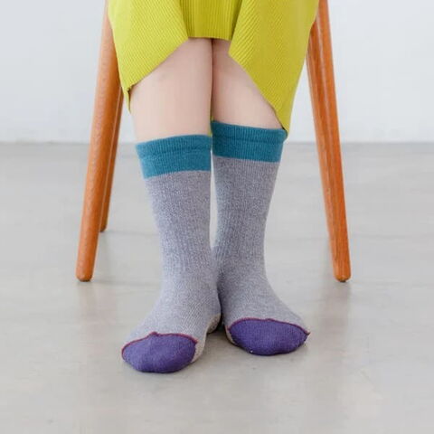 | 機能性も備えた おしゃれなデザイン つま先の縫い合わせを表側にしており、つま先のゴロツキ感を感じることなく着用いただけるクルーソックスです。足底はパイル調仕様でクッション性があり、ウォーキングなど身体を動かす際にもおすすめ。遊び心あふれるカラフルな色合いで、日常のスタイリングにさりげないアクセントを添えてくれます。 |