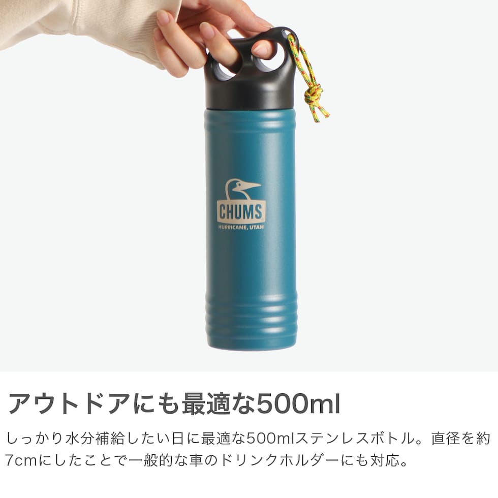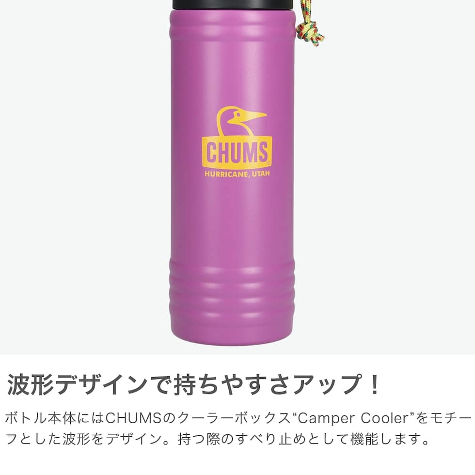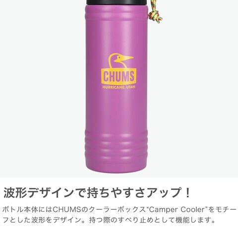 【日本正規品】 チャムス 水筒 マグボトル 持ち運び 蓋付き かわいい CHUMS おしゃれ コンパクト ボトル ステンレスボトル タンブラー 保温 保冷 アウトドア キャンプ Camper Wave Bottle 500ml CH62-2128