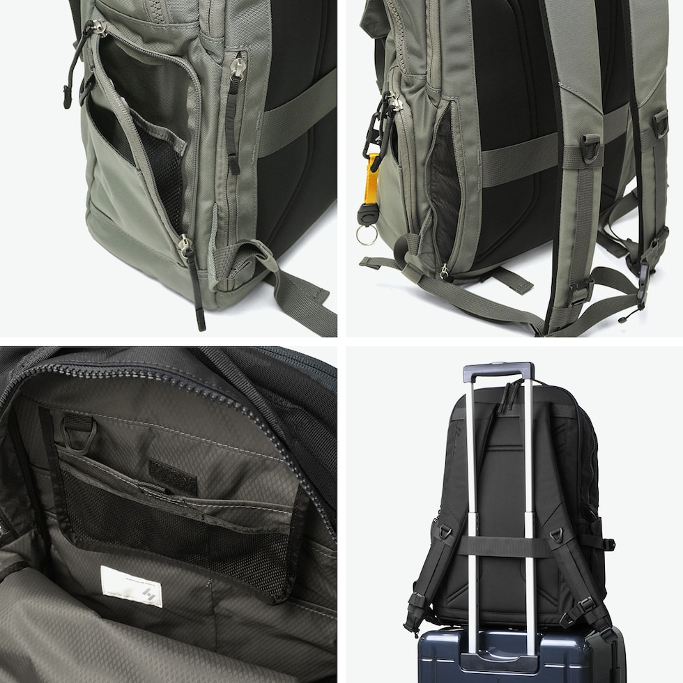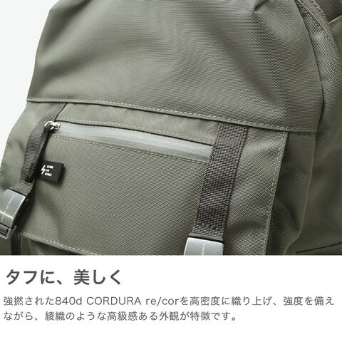 master-piece(マスターピース)やAS2OV(アッソブ)を経たデザイナーが手がける注目の気鋭ブランド『CIE/シー』。こちらは、国内生産では難しいパーツや縫製仕様を織り混み、クラシックな雰囲気と実用性を両立したシリーズ『ARISE』のバックパックです。『ABLE』シリーズからマイナーチェンジを図り、一部を撥水から止水ファスナーへと変更。防水性と高い耐久性を備え、幅広いシーンで活躍するアイテムです。