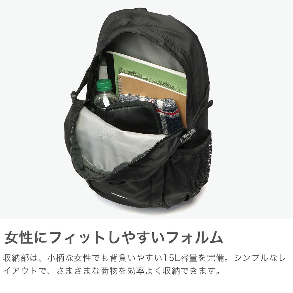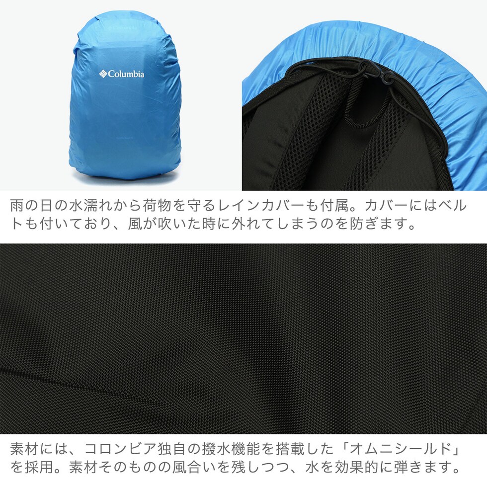 | 悪天候にも対応する 機能的なバックパック 日帰りの登山やハイキングに最適な、コロンビア定番のバックパック。こちらは、より女性にフィットしやすいコンパクトな15L容量です。本体には強度の高いナイロン素材に、ブランド独自開発の撥水機能「オムニシールド」を搭載。さらに、リフレクターや付属のレインカバーなど、アクティブなシーンに頼れる仕上がりとなっています。 |