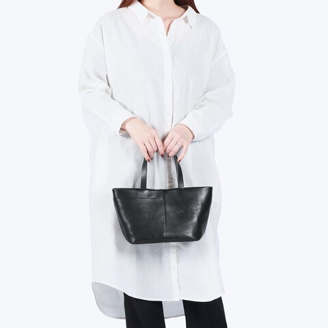 | さりげない品格を添える 大人のデイリートート 程よい厚みのあるカウレザーの質感を存分に堪能できる『TRONC』シリーズのトートバッグ。小ぶりながら長財布がしっかり収まるサイズ感で、デイリーユースに最適です。内外に配置された複数のポケットが小物を整理しやすく、取り出しもスムーズ。美しいレザーのツヤ感とアンティーク調のディテールが上質な雰囲気を醸し出し、細かなシボが豊かな表情を演出します。 |