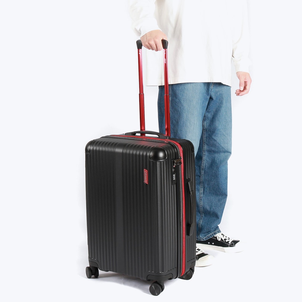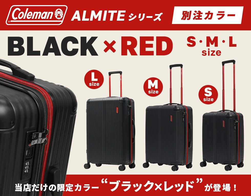 | 実用的な機能を 豊富に備えたキャリー 旅行を快適にする機能性を備えた「ALMITE」シリーズのスーツケースから、5~6泊程度の旅行に最適なミディアムサイズのモデルが登場。本体サイドのファスナーを開くことにより、サイズを60~69Lまでに広げることが可能で、出先で荷物が増えても安心。内装には複数ポケットを設け、細かな荷物も収納しやすいつくりになっていたり、内部のウォールポケットは取り外して単体使いが可能であるなど、実用性に長けた作りが魅力です。バイカラーがスタイリッシュな「BLACK×RED」は当店でしか手に入らない別注カラーになっています。 |