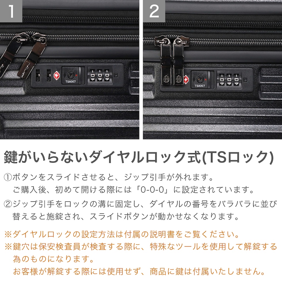 | TSAロック | あり ※TSAロックについて |