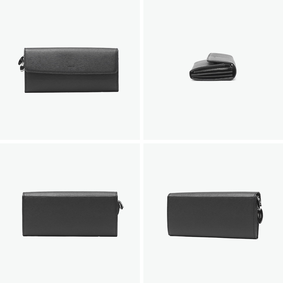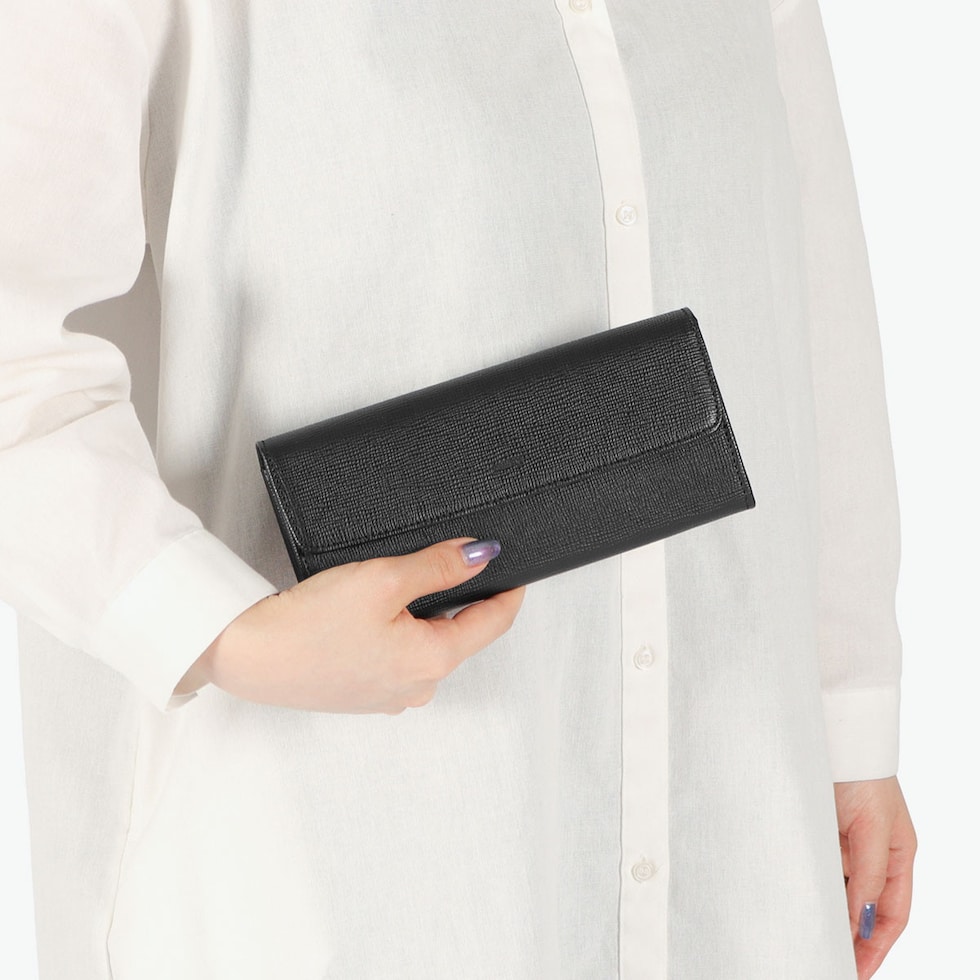 フラップ長財布 高級感と上質感漂うソフトな牛革型押しデザイン『Sully/シュリー』の長財布。アクセサリー的なブランドプレートチャームに加え、本体同色のファスナープルがさりげない可愛さを演出してくれます。シンプルなつくりと充実の収納力でデイリー使いしやすい仕上がりです。 |