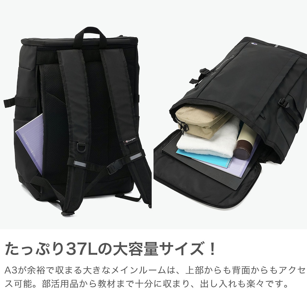 チャンピオン リュック メンズ レディース 通学 大容量 Champion カジュアル おしゃれ 大きめ 大きい 男子 女子 中学生 高校生 軽い 軽量 ボックス型 丈夫 A3 B4 耐水 PC収納 ブランド リュックサック 37L 68902