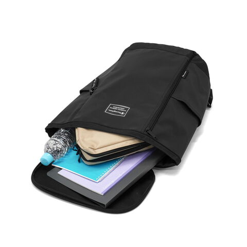 | 学生生活に寄り添う 軽量スクールリュック ブラックベースに映えるロゴカラーが印象的なChampionのボックス型スクールリュック。シンプルながらも洗練されたデザインで、通学や通勤からタウンユースまで幅広く活躍します。33Lの大容量設計で、A4・B4サイズの書類や教科書、部活用品もしっかり収納できます。15.6インチ対応のPCスリーブを備え、ノートパソコンの持ち運びも安心です。軽量なリサイクルポリエステル素材を使用し、環境にも配慮したバッグになります。性別や年代を問わず使いやすいデザインで、毎日のスタイルに自然と馴染みます。 |