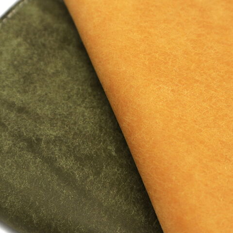 | 独特な風合いをもつ 温かみ感じるアイテム 和紙のようなサラッとした質感と、鮮やかな色味が特徴の「SLATE PUEBLO」シリーズのラウンドファスナー長財布。内側と外側で色合いが異なるので、経年変化によってそれぞれ違う表情を楽しめます。12枚のカードが収納可能なほか、仕切りやポケット類も複数設け収納力も十分。スマートな印象になるよう小銭入れをあえて薄く設計するなど、細部にまでこだわった仕上がりです。 |