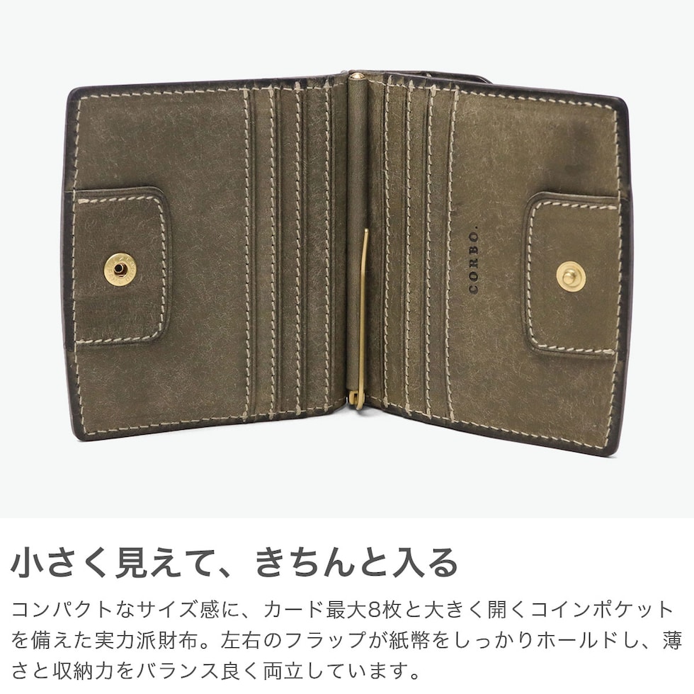コルボ 財布 メンズ レディース 本革 CORBO. 日本製 ブランド 大人 札 小銭 小銭入れあり 小さめ 小さい コンパクト 革 レザー 牛革 ミニ財布 プエブロ SLATE PUEBLO マネークリップ式コンパクト財布 1LN-1715