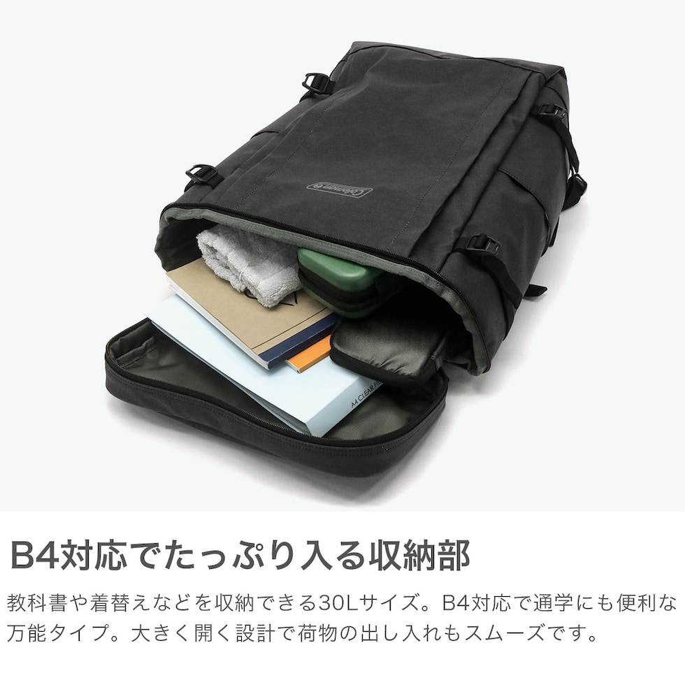 【公認販売店】 コールマン リュック メンズ レディース バックパック 大容量 Coleman ブランド カジュアル リュックサック スクエア 通学 部活 A4 B4 30L 防水 PC収納 ファスナー おしゃれ スクール シールド30