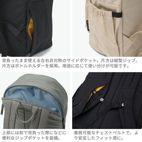 多機能で使い勝手抜群 Universal(普遍性)・Unique(自分らしさ)・Unisex(性別を超えて)この3つの“Uni”をコンセプトに、シンプル且つシームレスなデザインを追求したシティーユースのシリーズ『UNI WALKER』のリュックサックです。31Lの大容量に加えPC収納やタブレット収納部を装備し、通勤や通学にもぴったり。体にフィットするパッド入りショルダーベルトや、視認性の高いインナーカラーを採用するなど、使いやすさを極めたアイテムに仕上がっています。 |