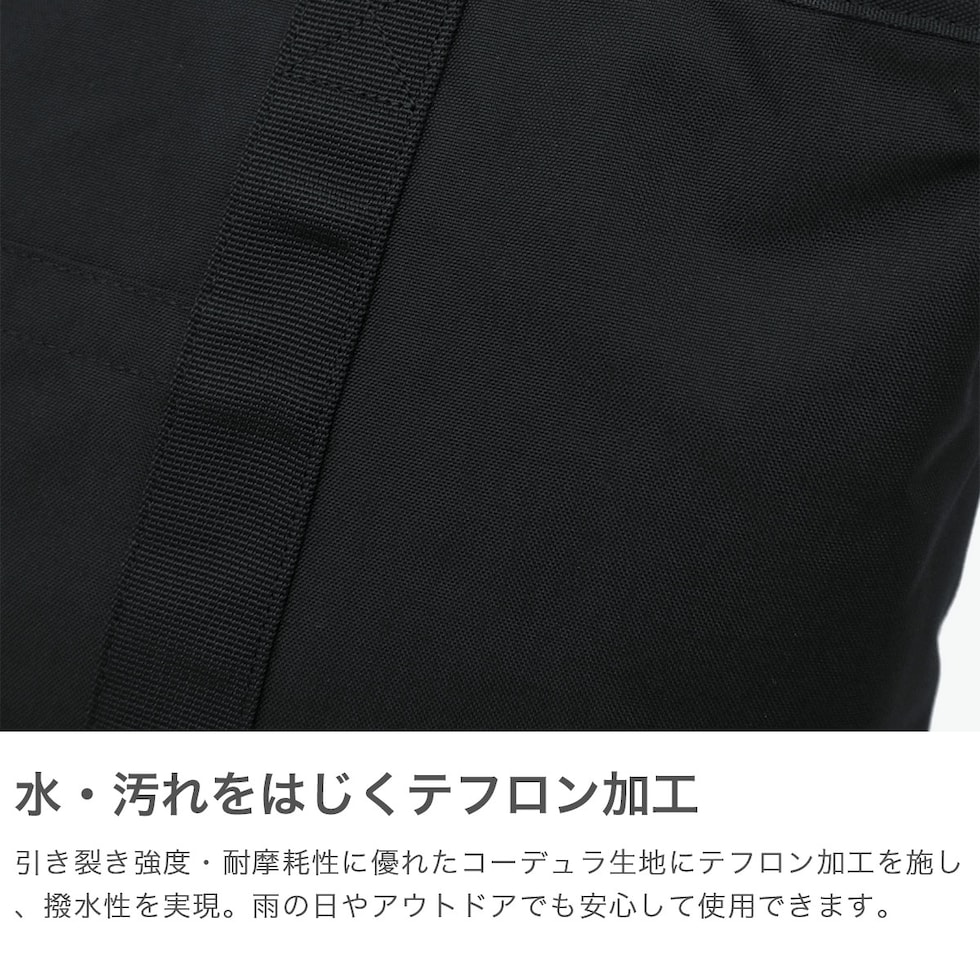 | 毎日タフに使える 軽量2WAYトート たっぷり大容量なサイズ感の2WAYトートバッグ。場面やコーデを選ばないクラシックなルックスが魅力です。本体には、摩擦や引き裂きに強いナイロン素材を採用。そこへ耐久・撥水性に優れた“テフロン加工”を施すことで、毎日のタフな使用にも十分に対応します。 |