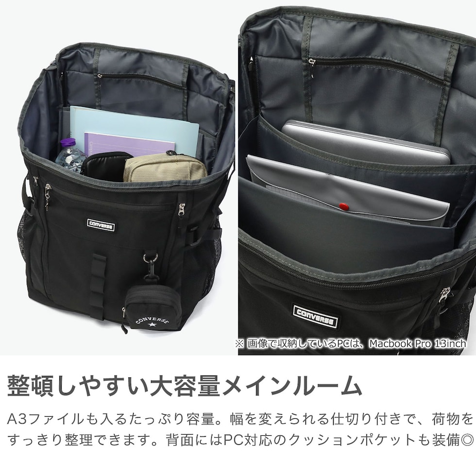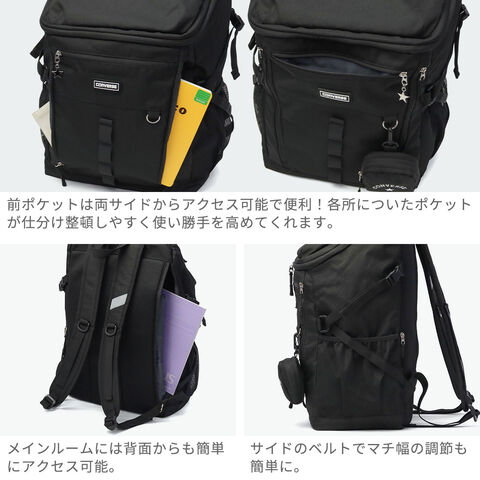 コンバース リュック 通学 レディース メンズ 大容量 CONVERSE 女子 男子 大学生 軽量 軽い PC カジュアル ブランド ボックス型 A3 A4 33L ポーチ リュックサック CV RUBBER PATCH BOX BACKPACK 81640100