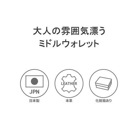 | 大人の雰囲気漂う ミドルウォレット 使う程にツヤが増し、深い色味へと変わっていく経年変化と、キメ細かく滑らかな肌触りの良さも楽しんでいただけるヌバックレザーシリーズ『TATUM』のミドルウォレットです。収納力もありながらそれでいてスマート。コインポケットは大きく開いて小銭が見やすい仕様になっています。お会計時のさりげないオシャレを楽しめるアイテムです。 |