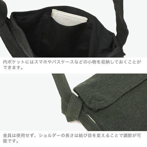 | シンプルながら 職人の技が光る逸品 リネンとウールの混紡糸を使用した『HYBRID LINEN』シリーズのフラップ付きのショルダーバッグMサイズ。金具は使用せず、ショルダーの長さは結び目を変えることで調節が可能。シンプルなデザインでファッションの邪魔をしない万能タイプのアイテムで男性女性関係なく使用していただけます。ナチュラルでこだわり抜いた素材感をお楽しみください。 |