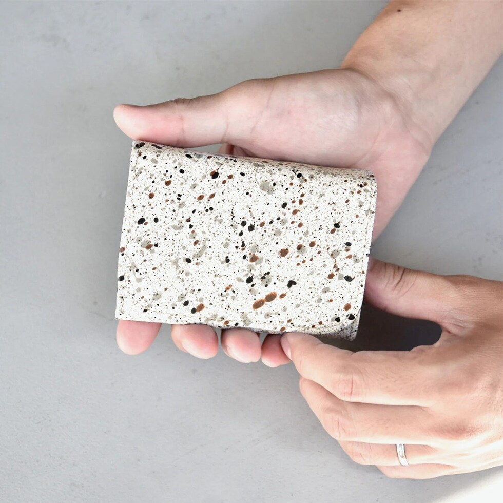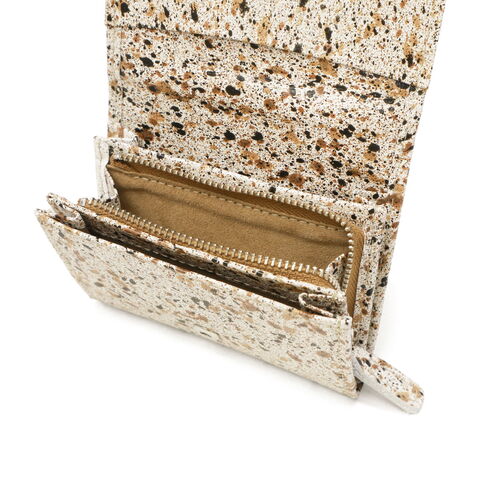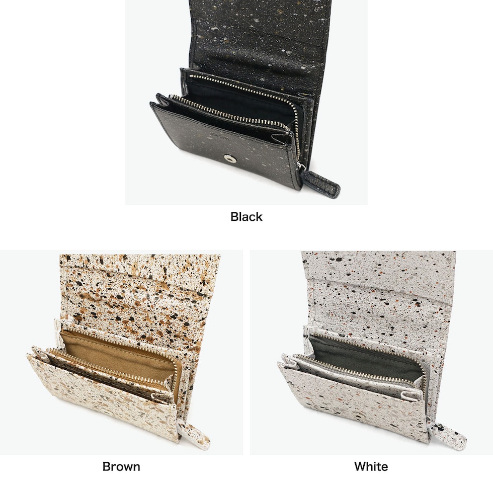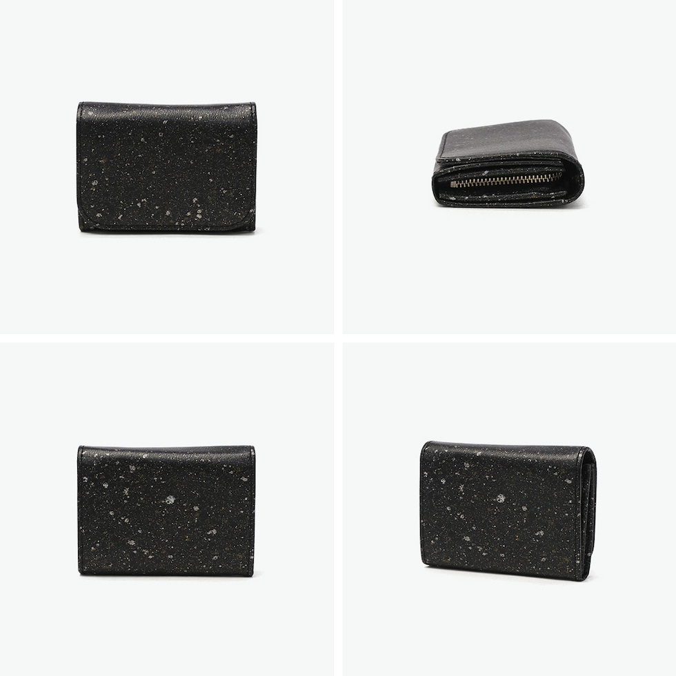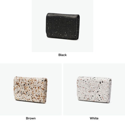 コンパクトウォレット 兵庫県の特産である本御影石を模したソフトレザーで仕立てた『MIKAGE』。こちらは、小さめバッグにもスッと収まるコンパクト財布です。札入れは付いていませんが、2つ折りや3つ折りに折り畳めば収納することができます。石のような見た目とソフトな風合いが特徴で、特別な調整を施したハンドスプレーを使い、職人が1枚1枚手吹きで仕上げていくため革1枚ごとに表情が異なる逸品。存在感あるアイテムに仕上がっています。 |