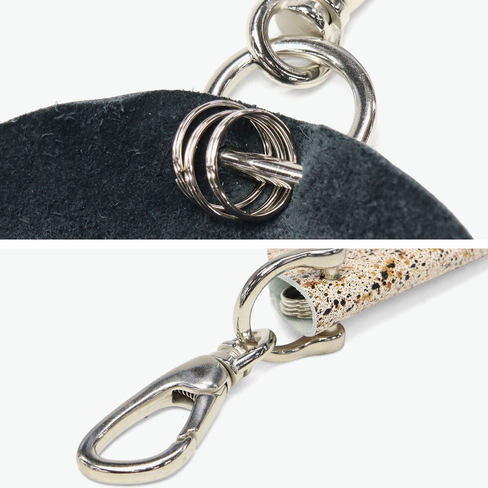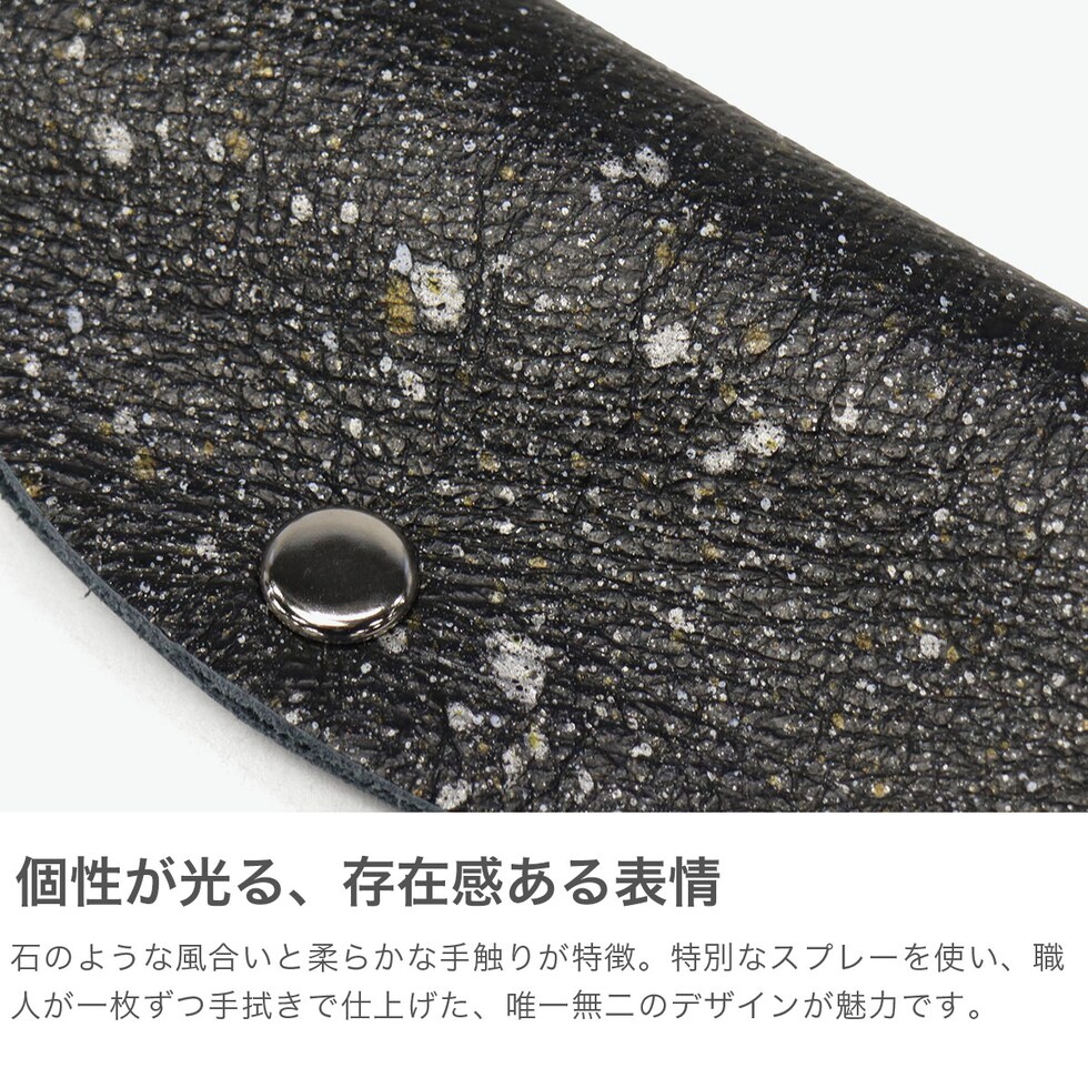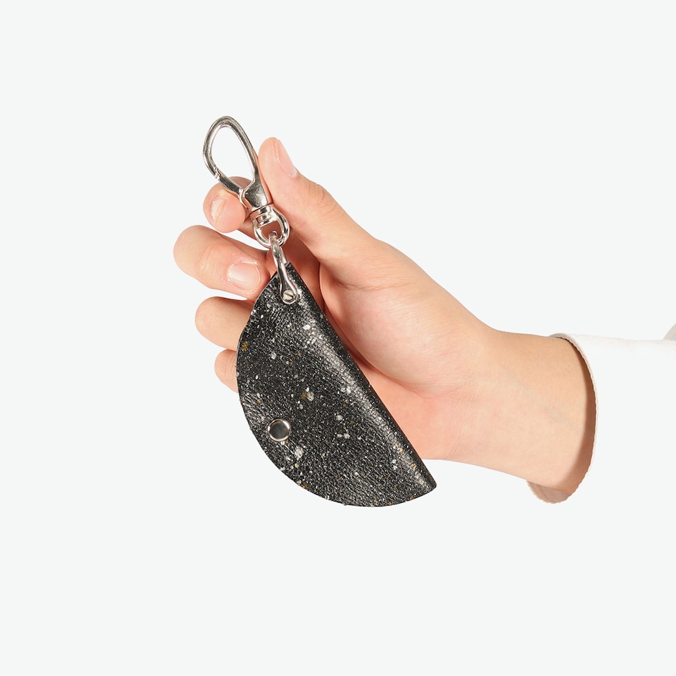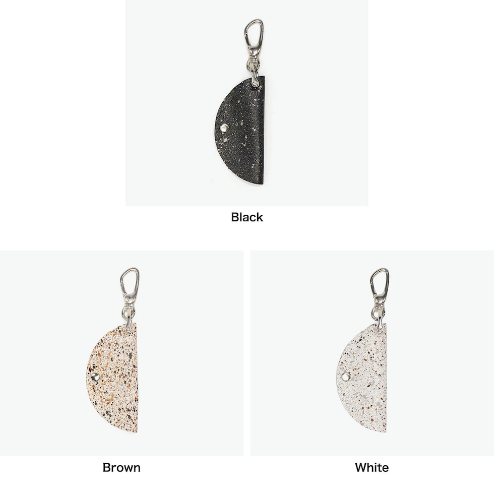 シンプルさが魅力 兵庫県の特産である本御影石を模したソフトレザーで仕立てた『MIKAGE』。「石のような見た目」と「手触りの良いソフトな風合い」が特徴です。鍵を革に包み込むデザインで、扱いやすいシンプルさがポイント。ベルトループや鞄に付けて持ち運びでき、洋服やバッグのアクセントとしても存在感のあるアイテムです。 |