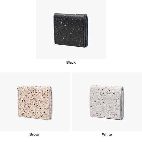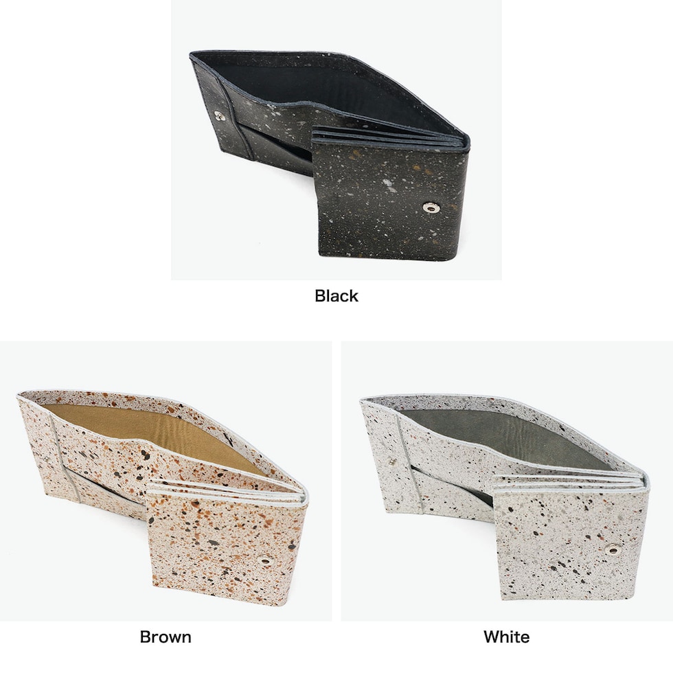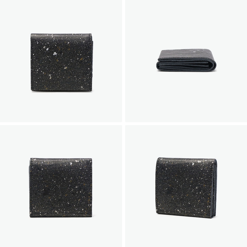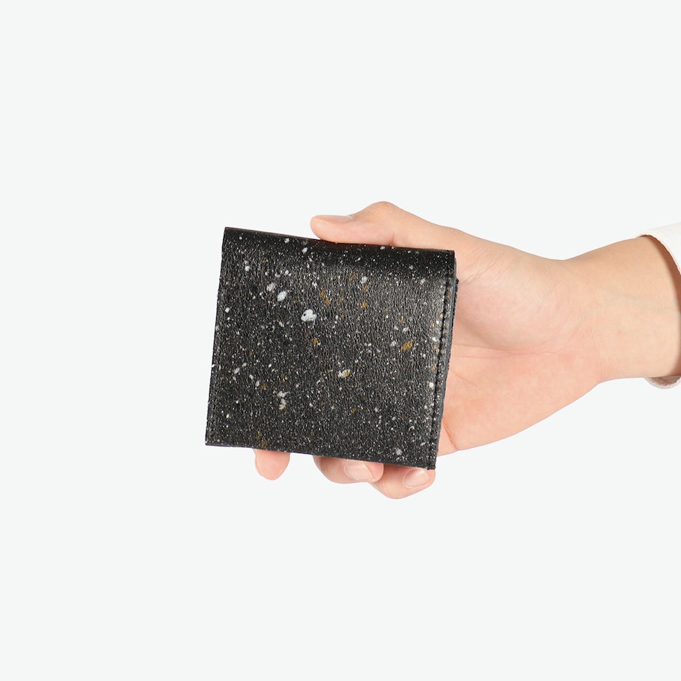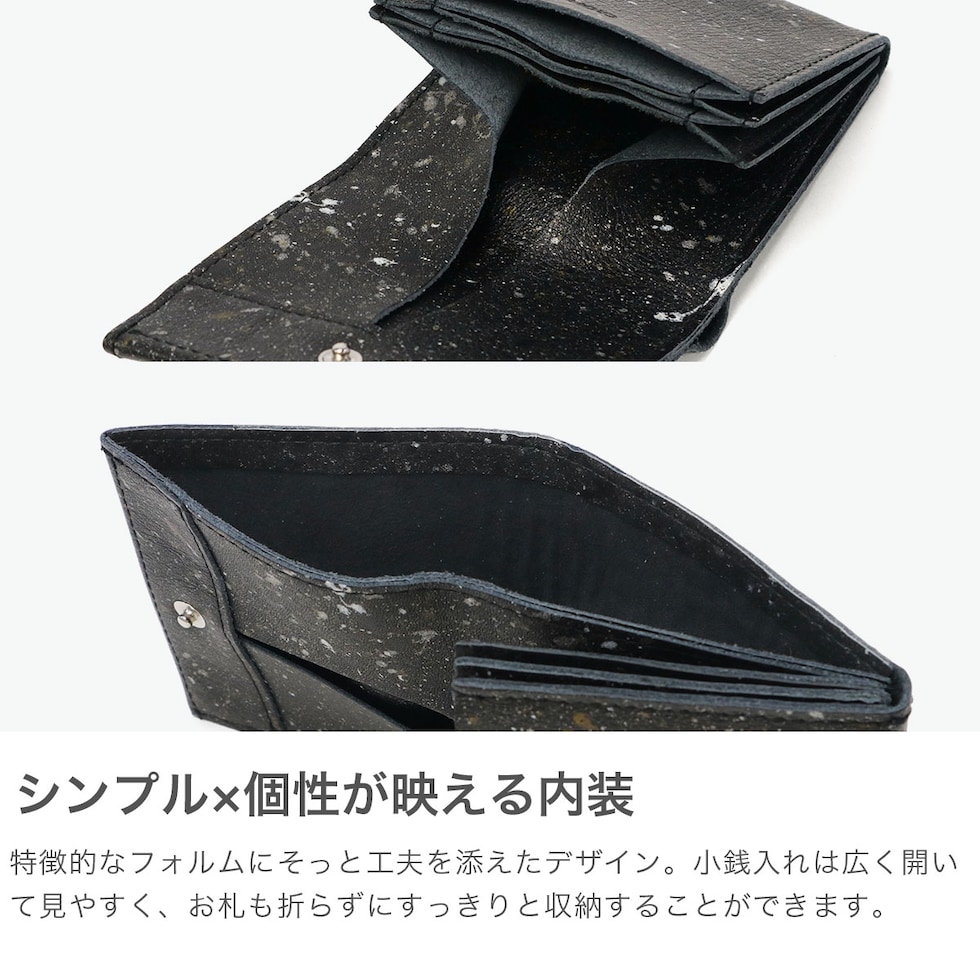 兼ね備えたデザイン 兵庫県の特産である本御影石を模したソフトレザーで仕立てた『MIKAGE』。「石のような見た目」と「手触りの良いソフトな風合い」が特徴です。こちらは小銭入れがちょっと変わった形の二つ折り財布。カードはまとめて束ねて入れるタイプで、ざっくりとしたアナログ感も人気です。 |