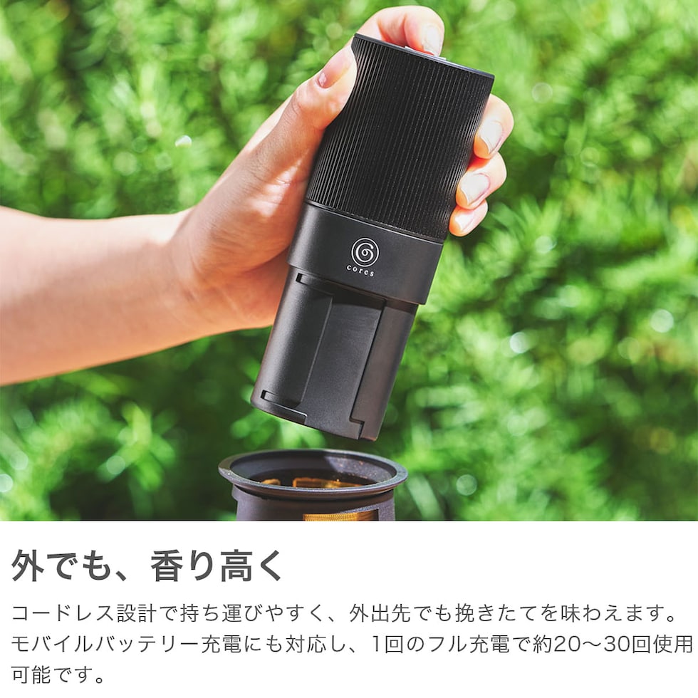 【正規品1年保証】 コレス コーヒーグラインダー 電動 コンパクト アウトドア コーヒーミル Cores コーヒー 充電式 コードレス 持ち運び 粒度調節 おしゃれ キャンプ ポータブルコーヒーグラインダー C351