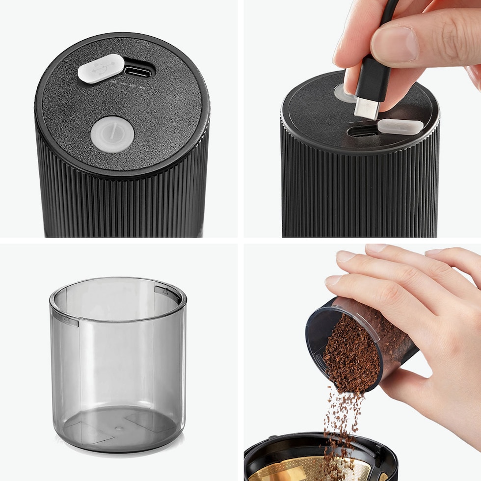 どこでも手軽に楽しめる お気に入りの豆を入れて、挽きたてコーヒーを手軽に楽しめる充電式ポータブルコーヒーグラインダー。おうちでのカフェタイムにはもちろん、スタイリッシュでコンパクトなデザインなのでアウトドアシーンにもぴったりなアイテムです。 |