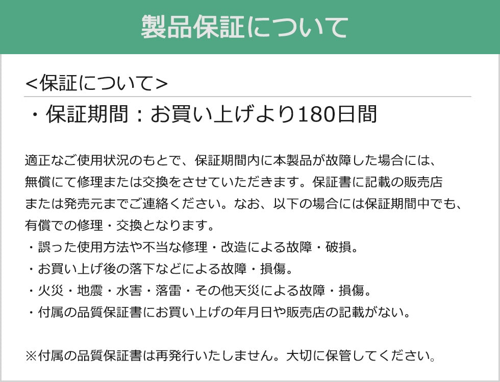 | <購入前にご確認ください> ・メーカーの意向により、付属品の収納袋や箱、製品の仕様やデザインは予告なく変更となる場合がございます。 ・本製品を安全に正しくお使いいただくために、商品をご使用する前に必ず「取り扱い上の注意」をご確認ください。 ・極力実物に近い色味を再現しておりますが、モニター等の条件により画面上と実物では色味が異なって見える場合がございます。 |