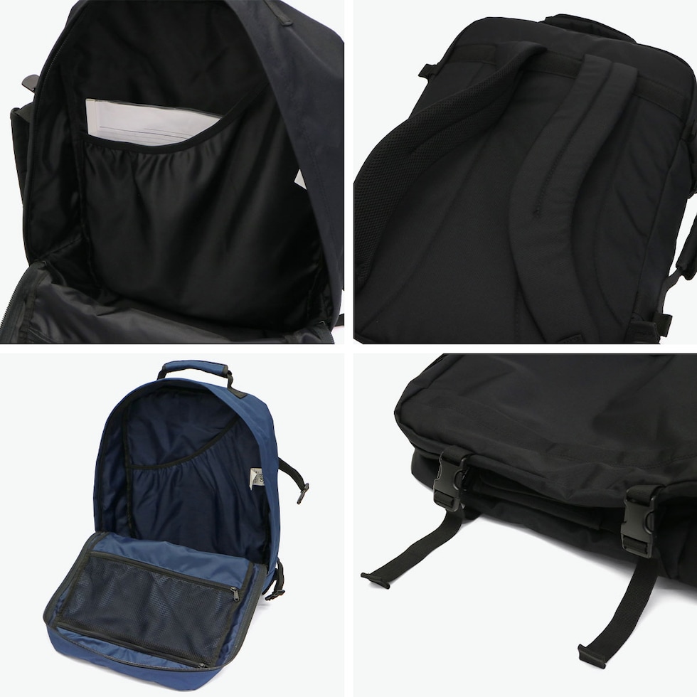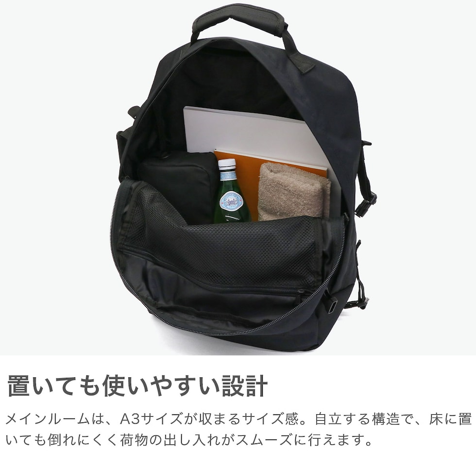 | 機内持ち込み対応の 大容量バックパック 旅行者からの要望に基づいて設計された、軽量かつ大容量のバックパック。機内持ち込み対応の44L容量を備え、1~2泊程度の旅行に大活躍間違いなしです。収納部はA3サイズも余裕で収まる広々としたスペース。内装には視認性の良いメッシュポケットや、B4サイズも収納できる大きめのポケットを装備しています。コの字に大きく開きパッキングしやすい収納設計と、本体の軽さが最大のポイントです。南京錠などで施錠できるキーロックホールや、世界最大手荷物捜査システム「OKOBAN」も付いており、セキュリティ面も考慮しています。 |