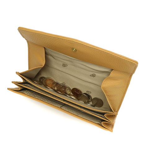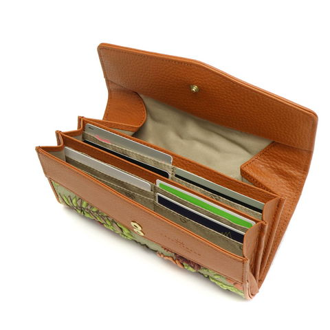 収納部はカードポケットを24カ所設け、多くなりがちなカード類もきちんと収納可能です。小銭入れは大きく開くギャルソンタイプ。見渡しやすく、お会計もスムーズに行えます。さらに外装には丁度良い大きさの背面ポケットを設けているので、駐車券やチケットなど、サッと取り出したい物の収納に最適です。