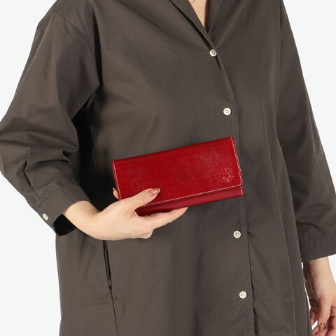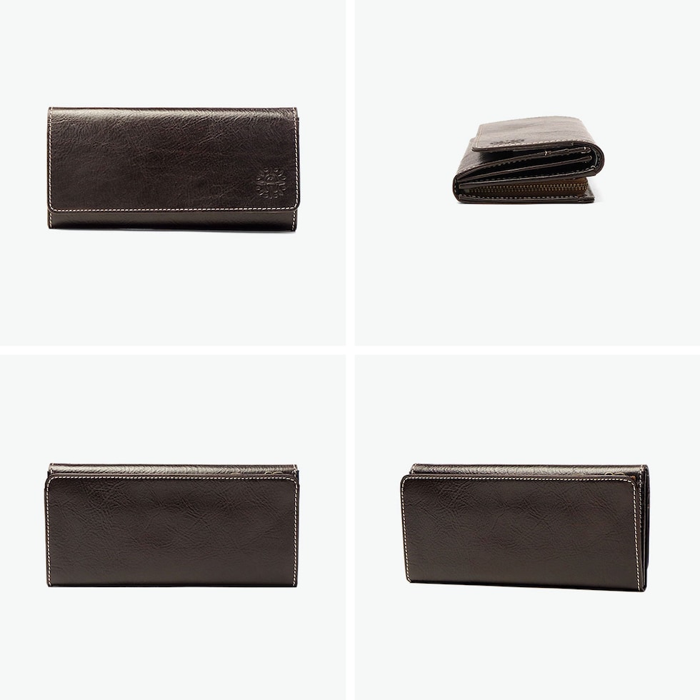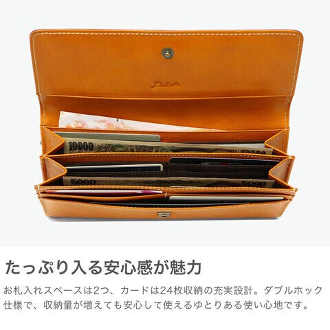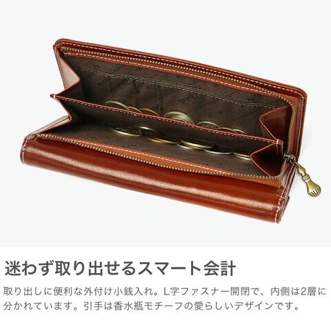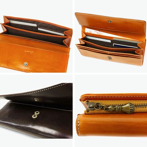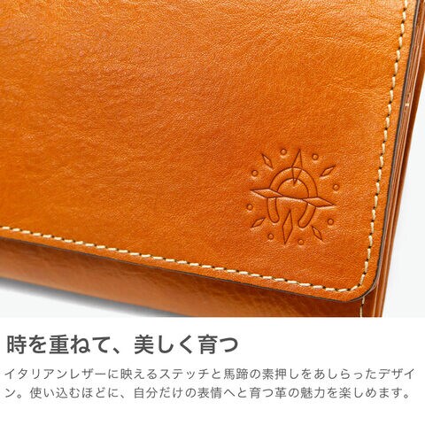 | 使い込んだような レザーの風合いが持ち味 馬蹄の素押しをあしらった、イタリアンレザーの魅力溢れる『フォンス2』シリーズの長財布。ステッチワークが革の風合いを引き立て、シンプルながら上品な印象に。手触りや色味の変化を楽しめるエイジングも魅力です。背面にはファスナー付き小銭入れを備え、お財布を開けずに硬貨を取り出せる便利な仕様。カード収納も豊富で、機能性とデザイン性を兼ね備えた逸品です。 |