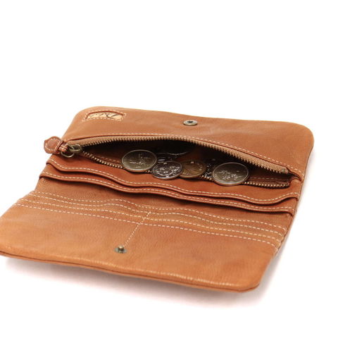 スナップで簡単に開閉可能な二つ折りタイプの本体は、お札や小銭、カード類を一通り収納できる、ベーシックで扱いやすいつくり。さらに内部にはマルチに使えるフリーポケットを2ヶ所装備しているため、領収書やレシート、チケットなどもしっかり管理しておくことができます。