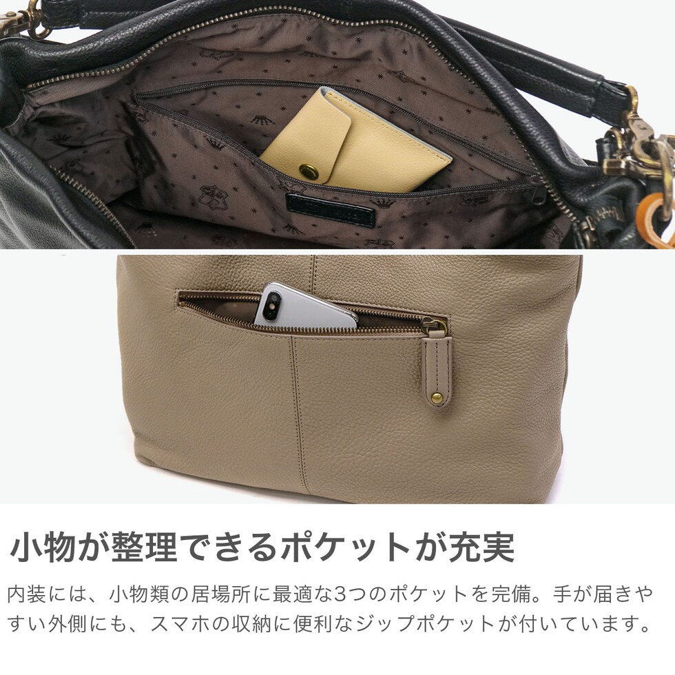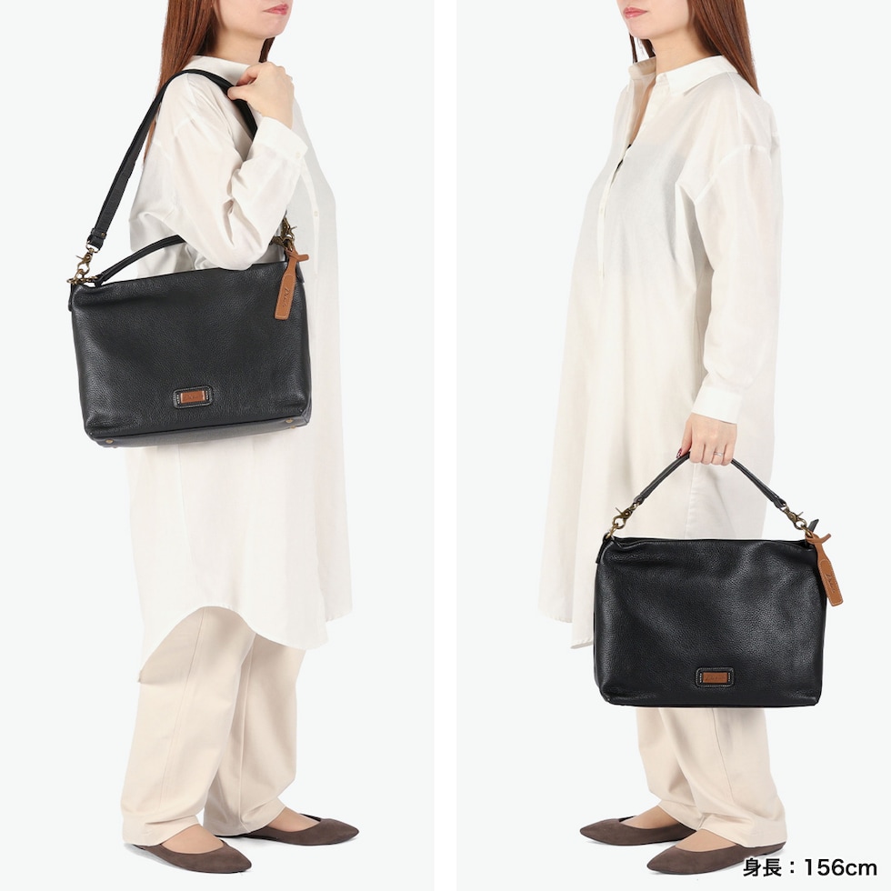 毎日に寄り添うバッグ どんな装いにも寄り添ってくれそうなシンプルなデザインと、ソフトな手触りのレザーを使用した優しい雰囲気が魅力のシリーズ『キャパ』の2WAYバッグです。マチ幅があるので、500mlのペットボトルや必需品をしっかりと収納できます。収納口はファスナーで、荷物が飛び出す心配もありません。本体には、ショルダーストラップとハンドルの2種類が付属。スタイルに合わせて自由に選べるところもポイントです。 |