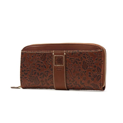 繊細な木々の型押しとミモザの花が愛らしいボタニカルなシリーズ『ミモザ』のラウンドファスナー長財布。素材には環境に優しい植物タンニン鞣し革を使用し、タンニンの原材料でもあるミモザの花をあしらいました。「優雅」「感謝」等素敵な花言葉を持ったミモザに癒され、優しい気持ちになれるアイテムです。