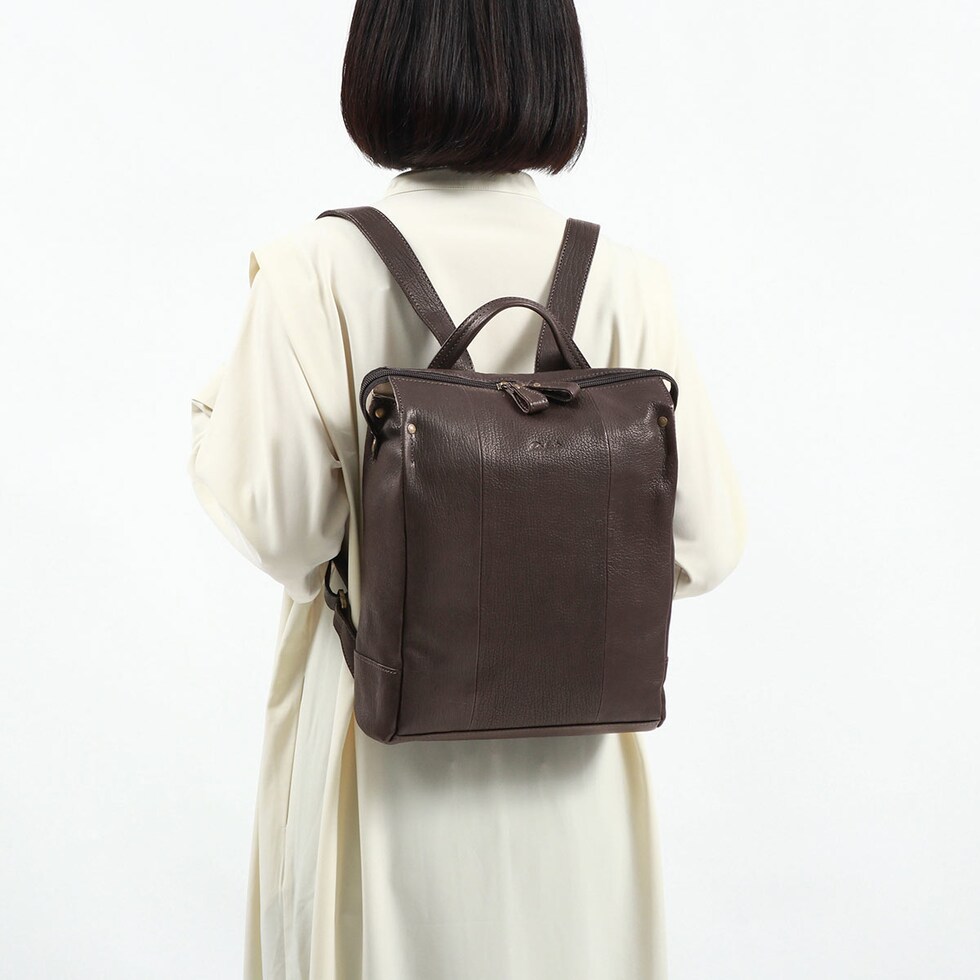 | あらゆるシーンに馴染む ナチュラルな仕上がり 軽量なやぎ革を使用し、軽やかに持ててデイリー使いしやすく仕上げた『ヤロップ』シリーズのリュックサック。革本来の風合いを活かすために加工を最小限にしており、パーツによってシボ感や色合いが異なるのが特徴です。本体は、薄マチながらもしっかり荷物が収まり、開閉がしやすいダブルジップ仕様。お出かけにも通勤にも使いやすいスクエアフォルムで、マルチに活躍します。 |
