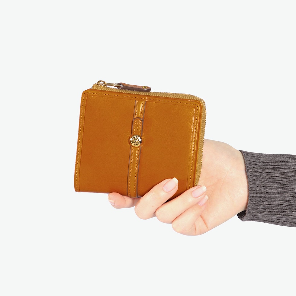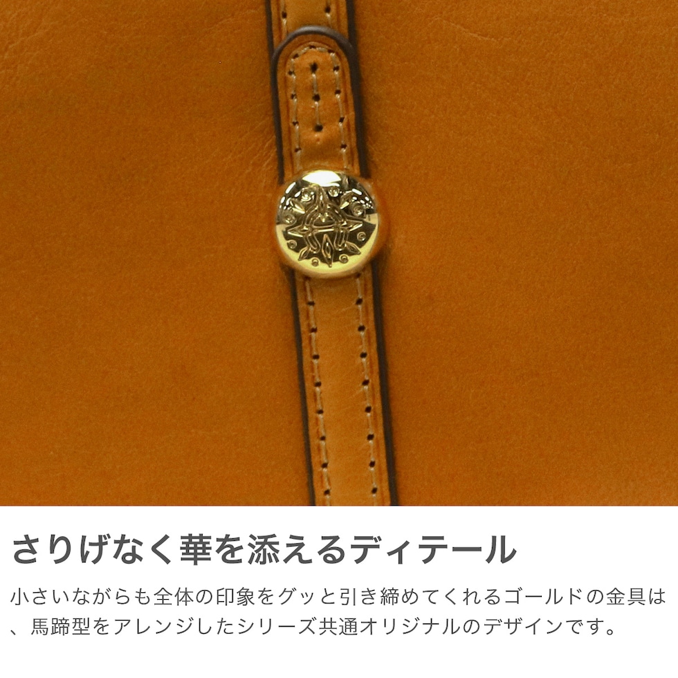 | 上品な雰囲気漂う クラシカルなデザイン ベルトデザインに丸い金のカシメでアクセントを効かせた「クーポラ」シリーズの二つ折り財布。かつてのヨーロッパの建築様式から着想を得たモチーフに、ベーシックなベルトデザインを合わせることで、クラシックな上品さと今っぽいムードを演出しています。タイムレスな魅力が溢れるお財布です。 |